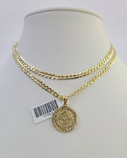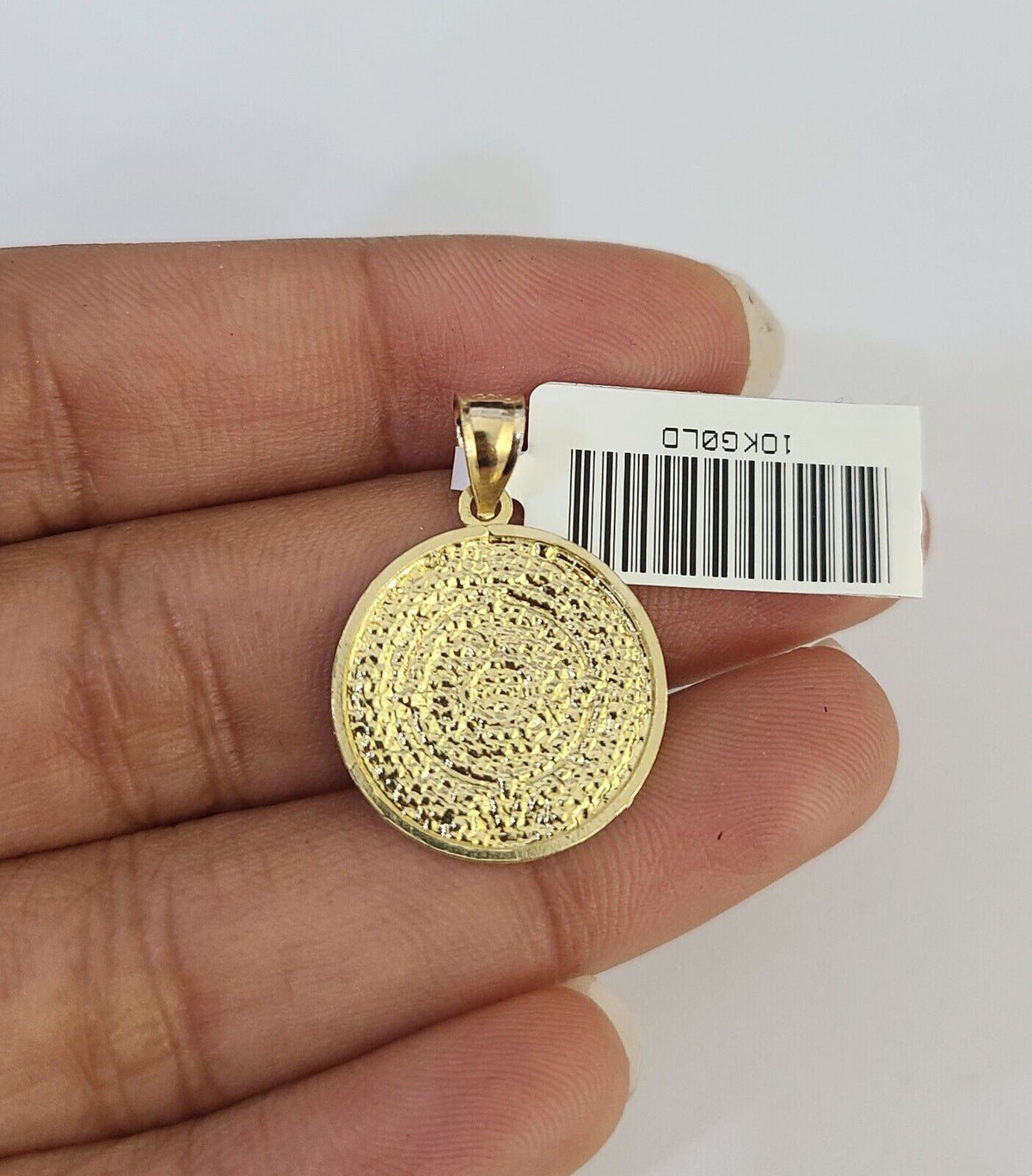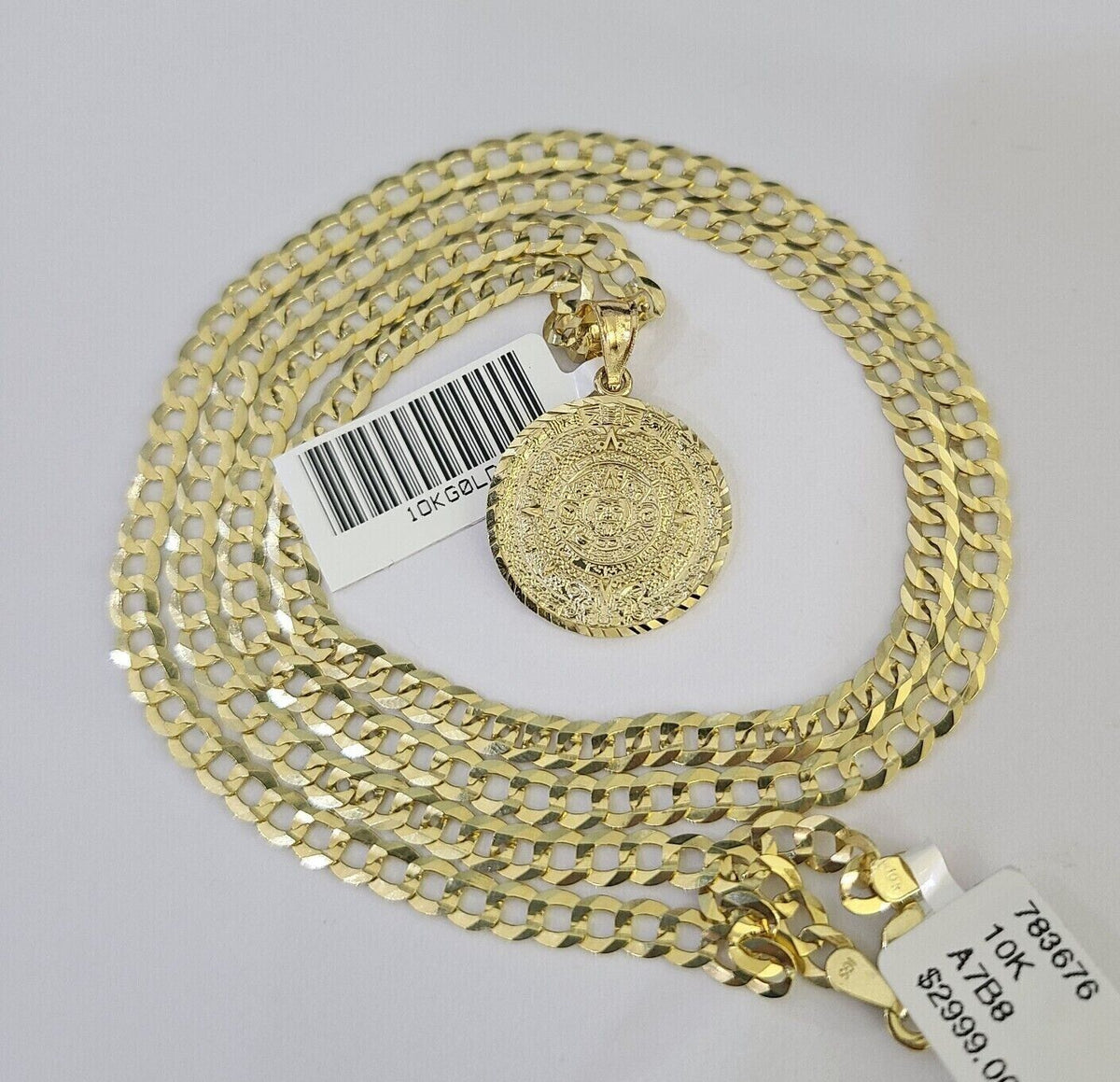 We present You with This Absolutely Stunning Real 10k Yellow Gold SOLID Cuban Curb link Chain with Mayan Calendar Charm. It has a detailed cut with a very good finish. These Beautiful Chains will not tarnish, discolor, or fade because they are Pure 10K Gold. Please feel free to contact us if you have any queries regarding the item. 24"-A7B8 A1B7