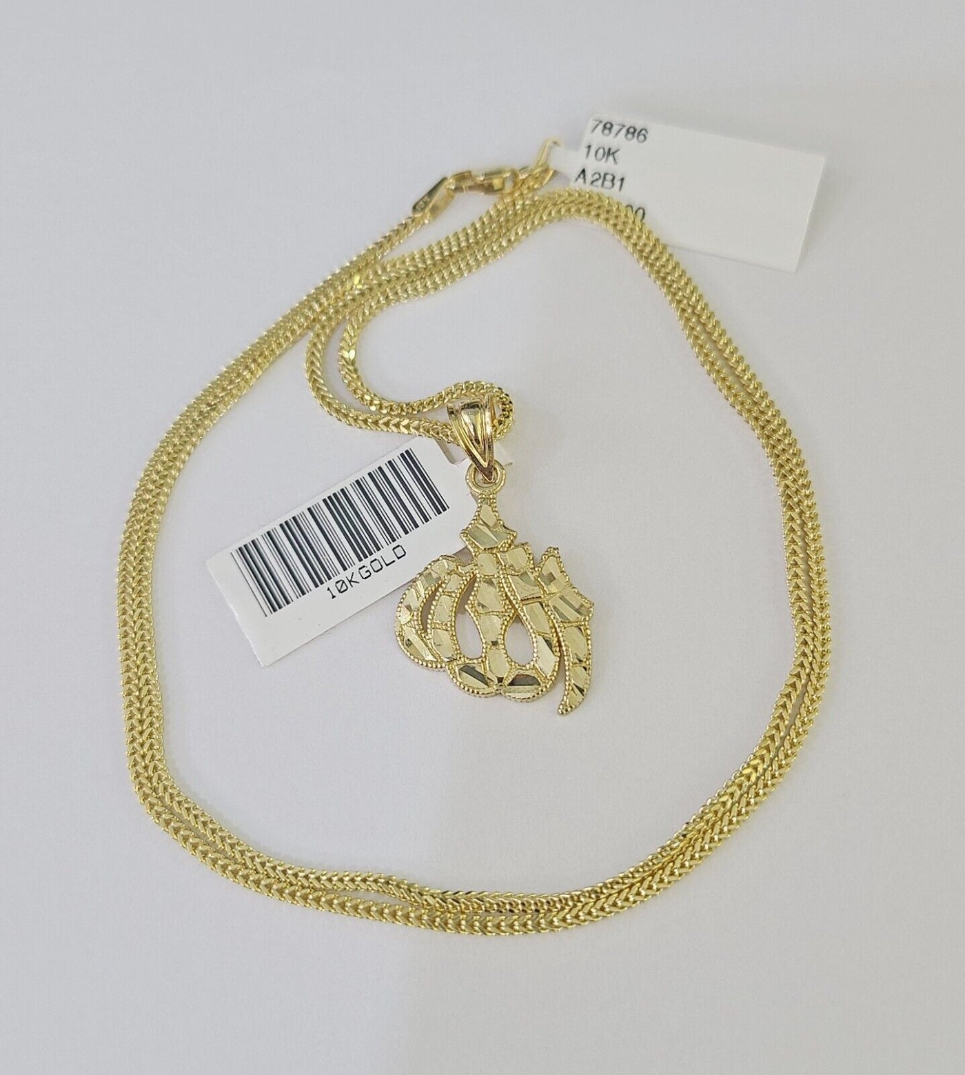 10K Gold Franco Chain Allah Charm SET Length 16-20 inches 1mm Ladies Women - Charm Only