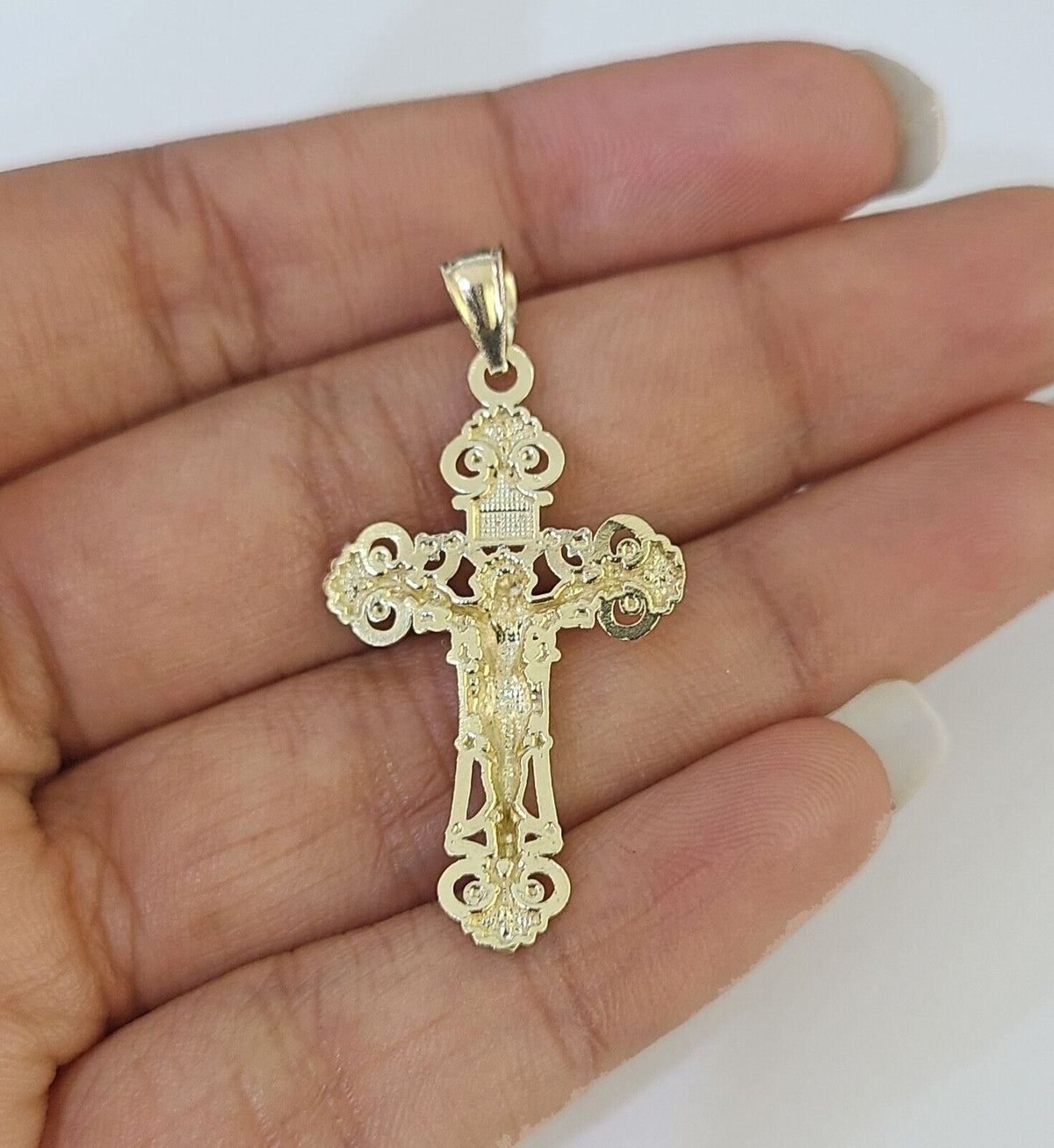 10K Gold Franco Chain INRI Cross Charm SET Length 16-20 inches 1mm Ladies Women - Charm Only