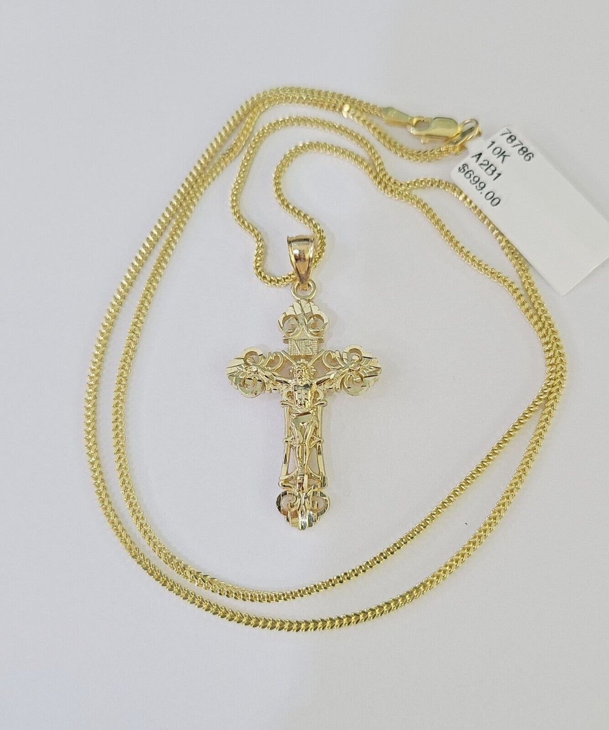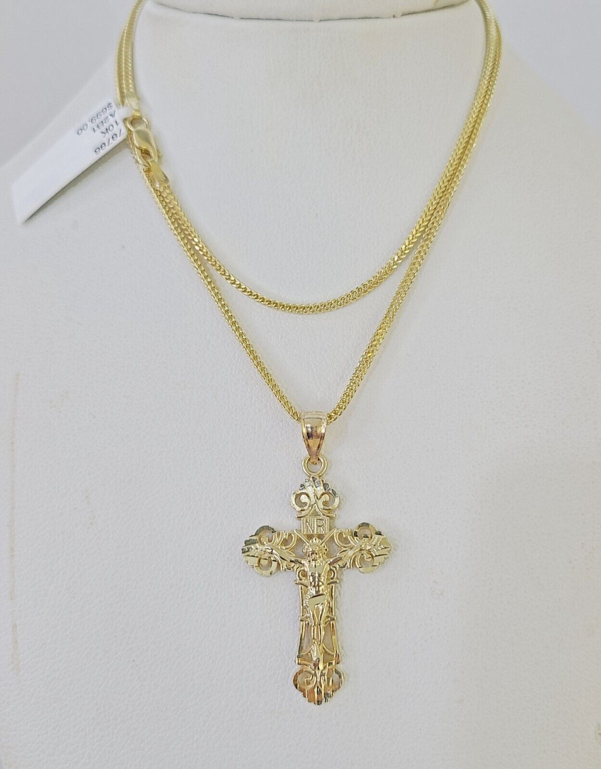 Globalwatches10 Is Presenting You with This Absolutely Stunning Real 10k Yellow Gold Franco Chain 1mm, 16-20 Inches with INRI Cross...