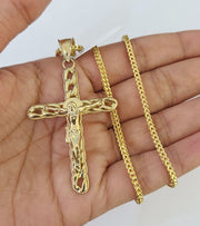 Is Presenting You with This Absolutely Stunning Real 10k Yellow Gold Franco Chain 2.5mm, 20-26 Inches with Jesus Cross Charm, Lobster Lock. The links are 10K GOLD and are very strong. 20"A6B5 A5B3 Ask