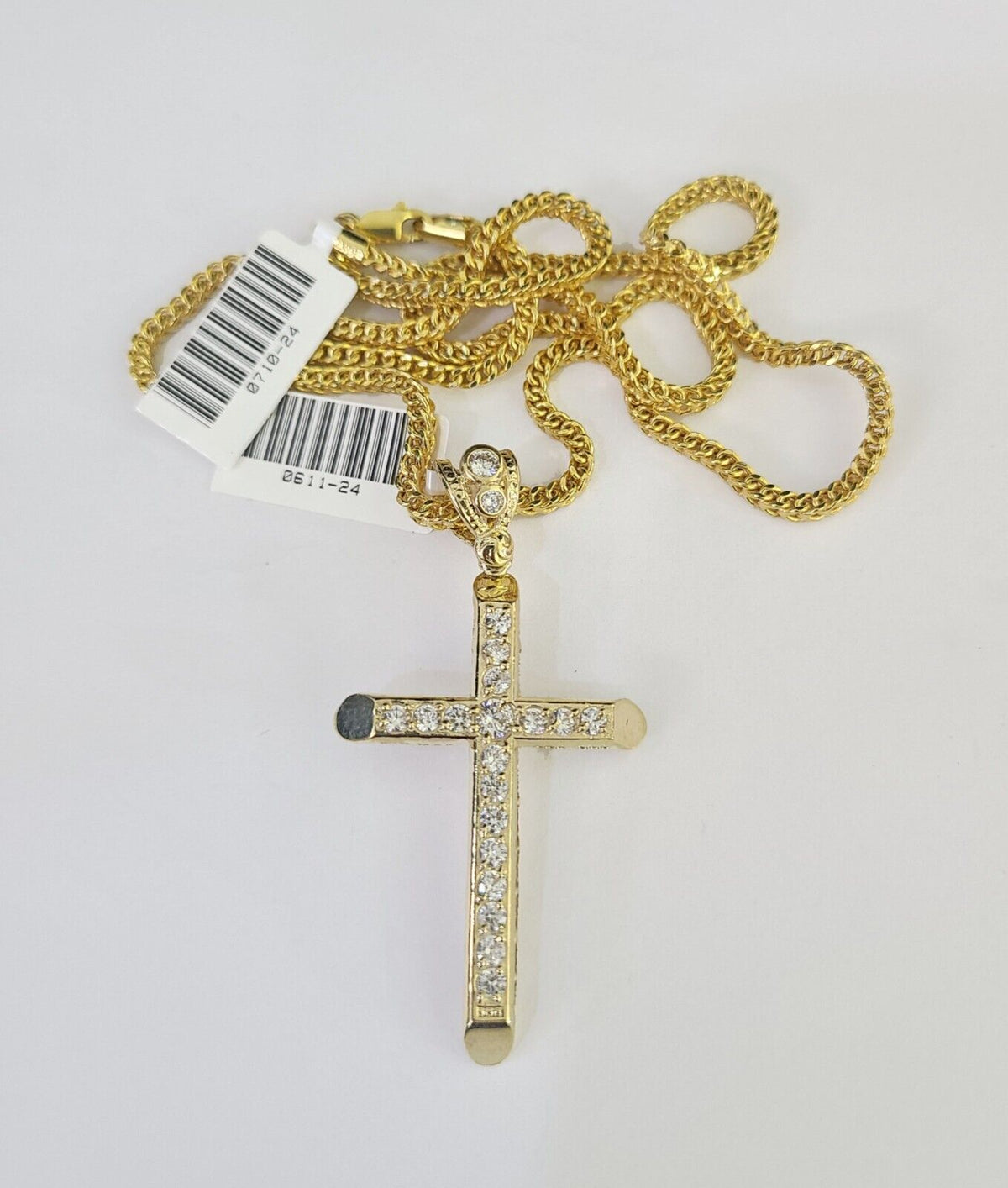 Is Presenting You with This Absolutely Stunning Real 10k Yellow Gold Franco Chain 2.5mm, 20-26 Inches with Jesus Cross Charm, Lobster Lock. The links are 10K GOLD and are very strong. 20"A6B5 A3B7