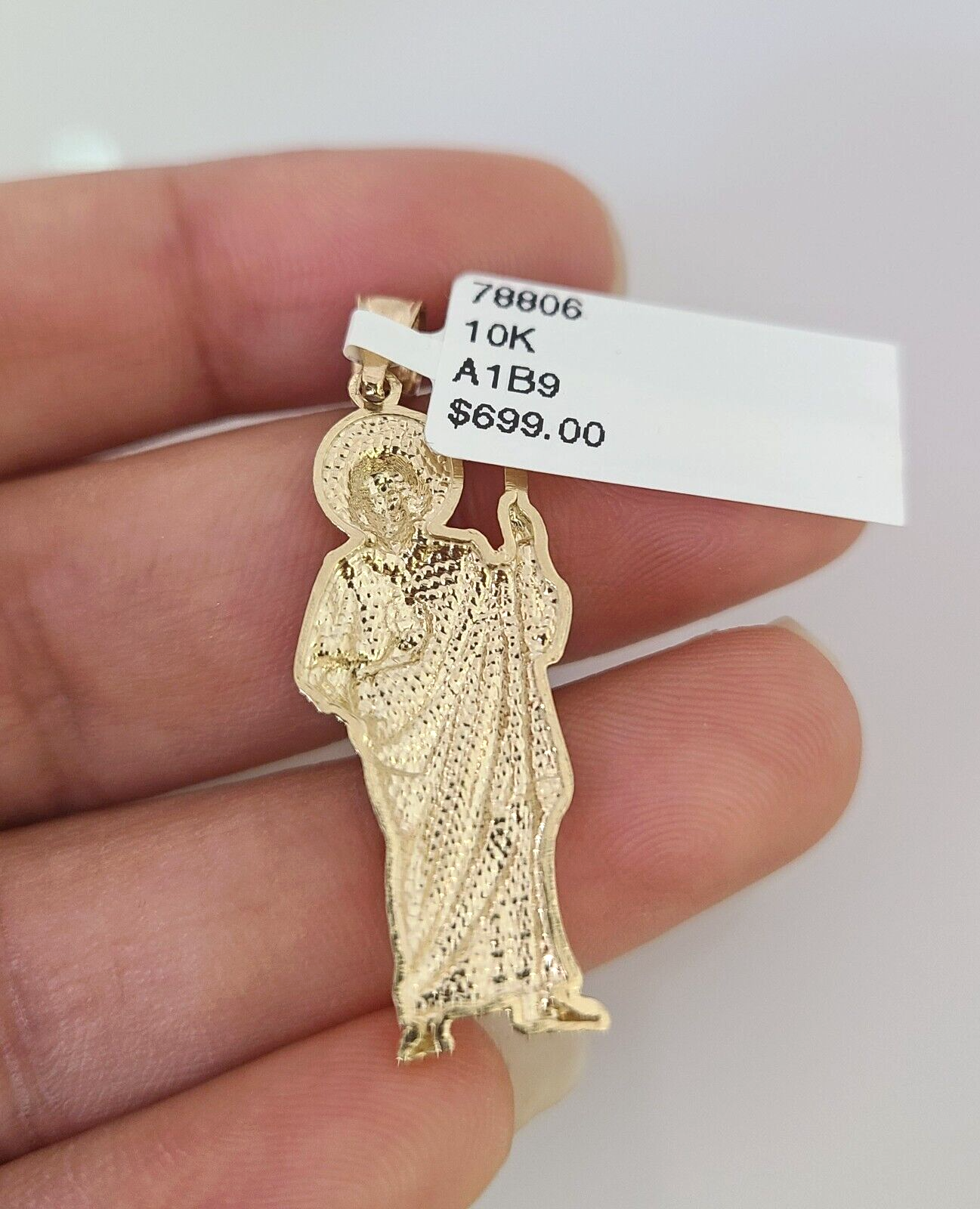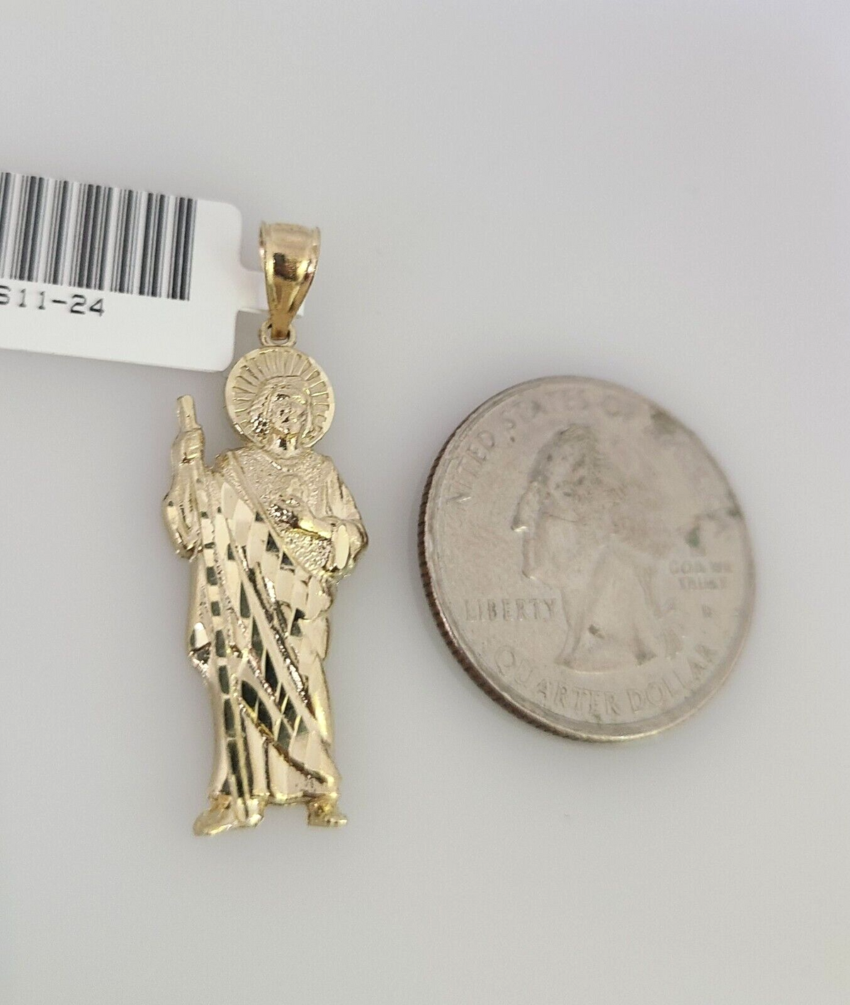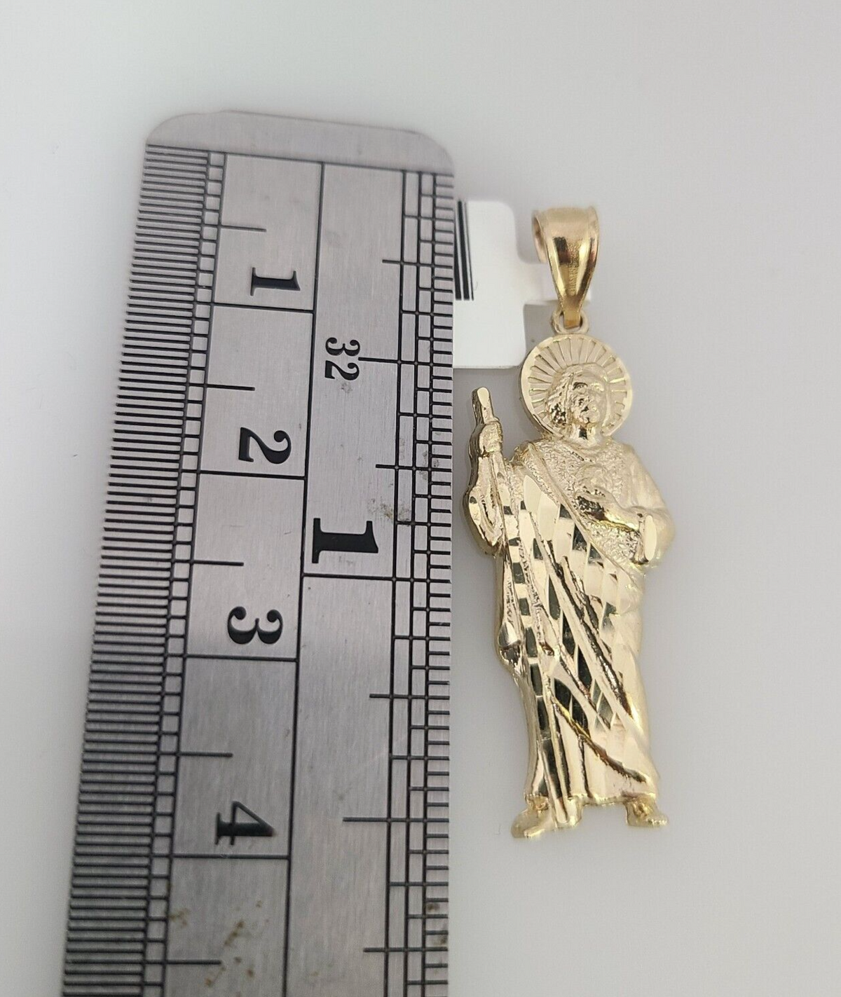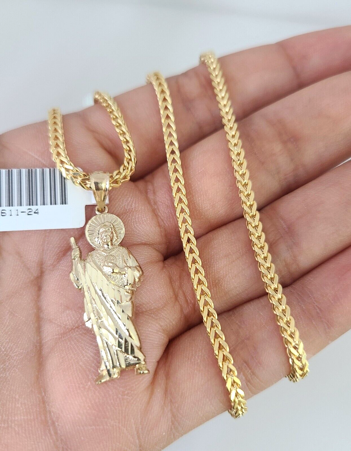 Genuine 10k Yellow Gold Franco Necklace 2.5mm Chain With Saint Jude Charm. The Various length of the Chain are 18"-24" with Saint Jude Charm 1-2 inches (approx.). The pendants are unique in design and considered durable too. If you are not happy with the way it looks or feels, we do offer 30 - Days FREE Return shipping. Contact us for more information.