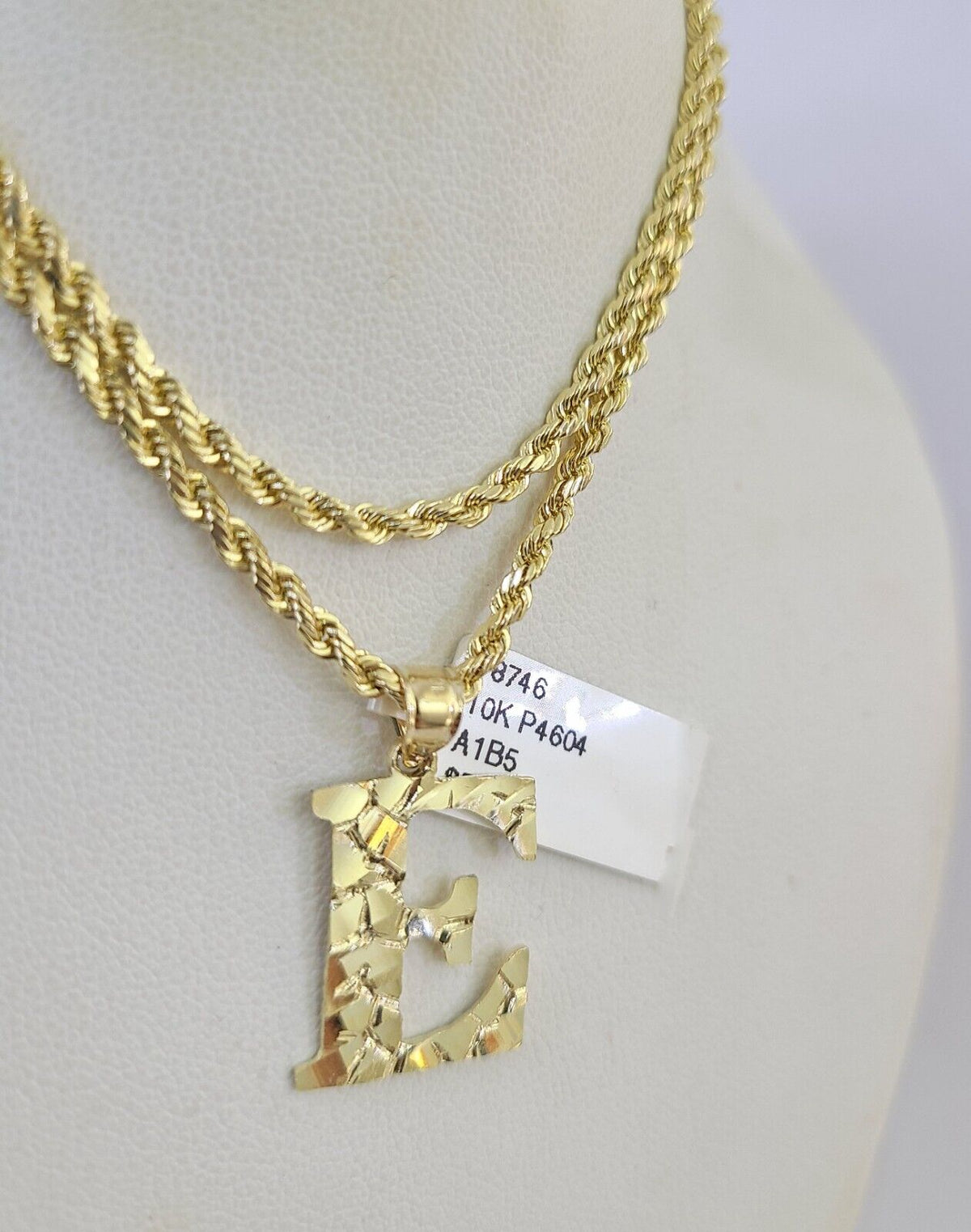 Is Presenting You with This Absolutely Stunning Real 10k Yellow Gold Rope Chain 2.5mm, 16-26 Inches Lobster Lock with E Initial/Letter/Alphabet. The links are 10K GOLD and are very strong. 18"-A3B1 A1B5 P4604