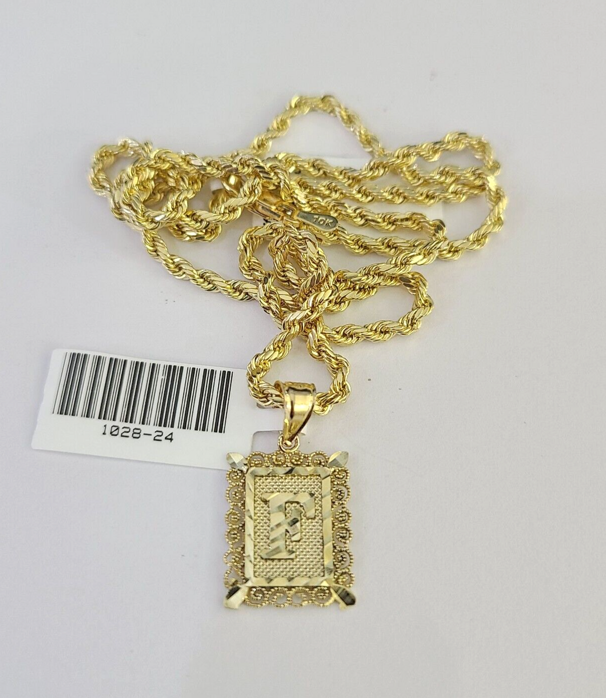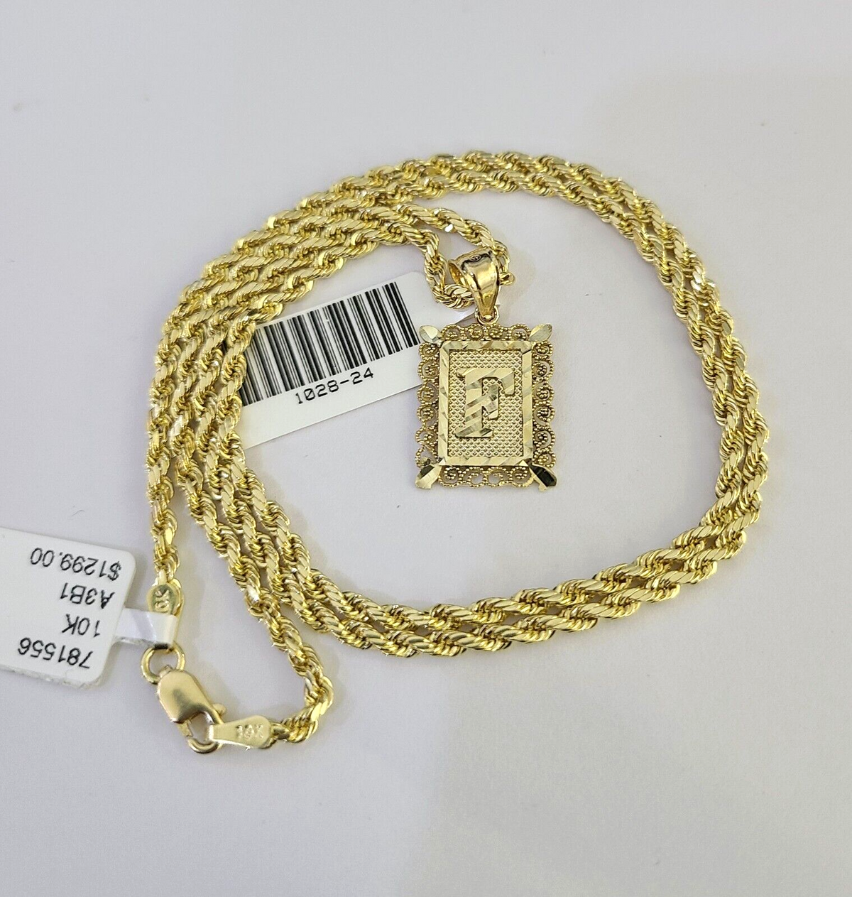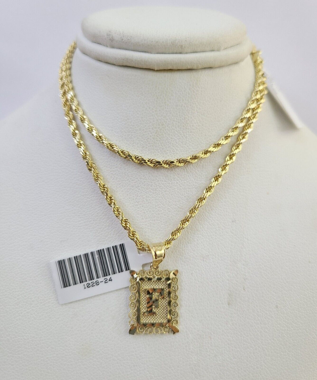10k Gold Initial F Charm Rope Chain 16"-26" 2.5mm SET Necklace Alphabet Pendant