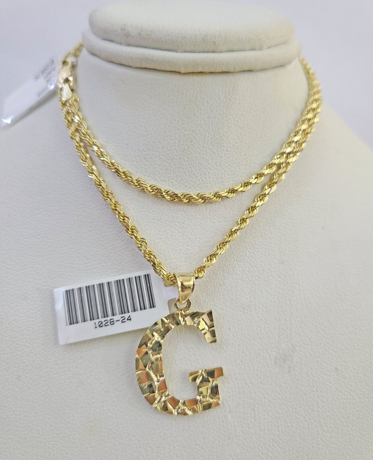 Is Presenting You with This Absolutely Stunning Real 10k Yellow Gold Rope Chain 2.5mm, 16-26 Inches Lobster Lock with G Initial/Letter/Alphabet. The links are 10K GOLD and are very strong. 18"-A3B1 A1B5 P4604