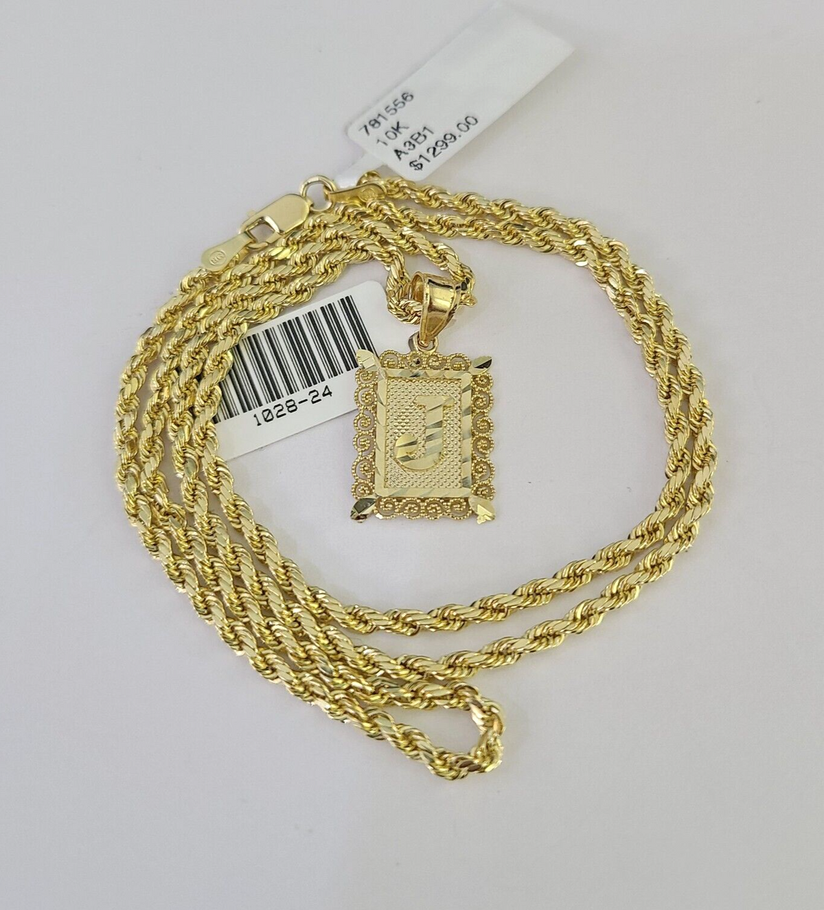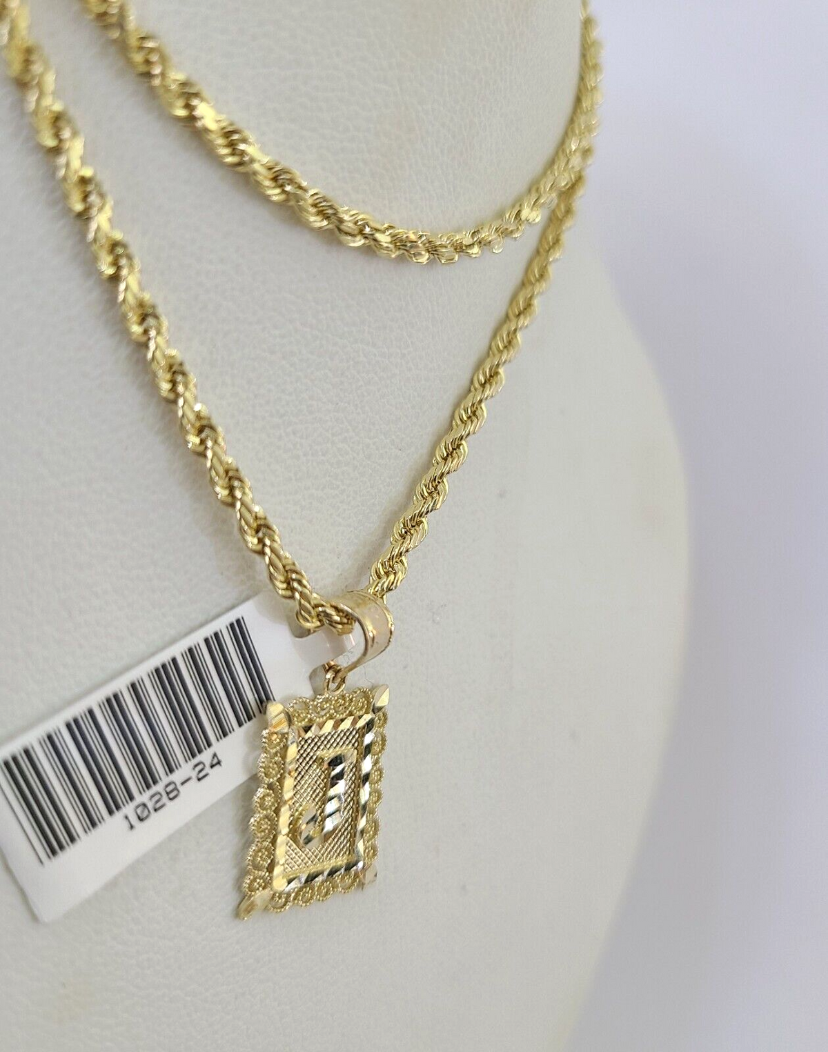 10k Gold Initial J Charm Rope Chain 16"-26" 2.5mm SET Necklace Alphabet Pendant