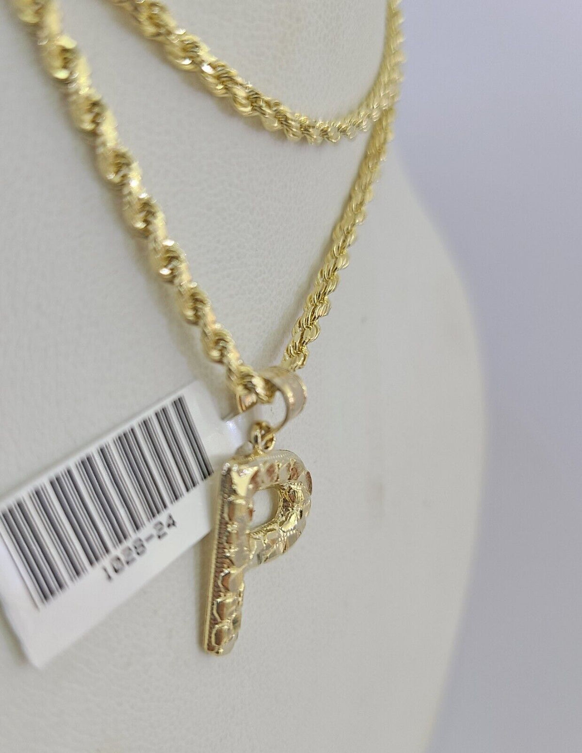 Is Presenting You with This Absolutely Stunning Real 10k Yellow Gold Rope Chain 2.5mm, 16-26 Inches Lobster Lock with P Initial/Letter/Alphabet. The links are 10K GOLD and are very strong. 18"-A3B1 A1B0