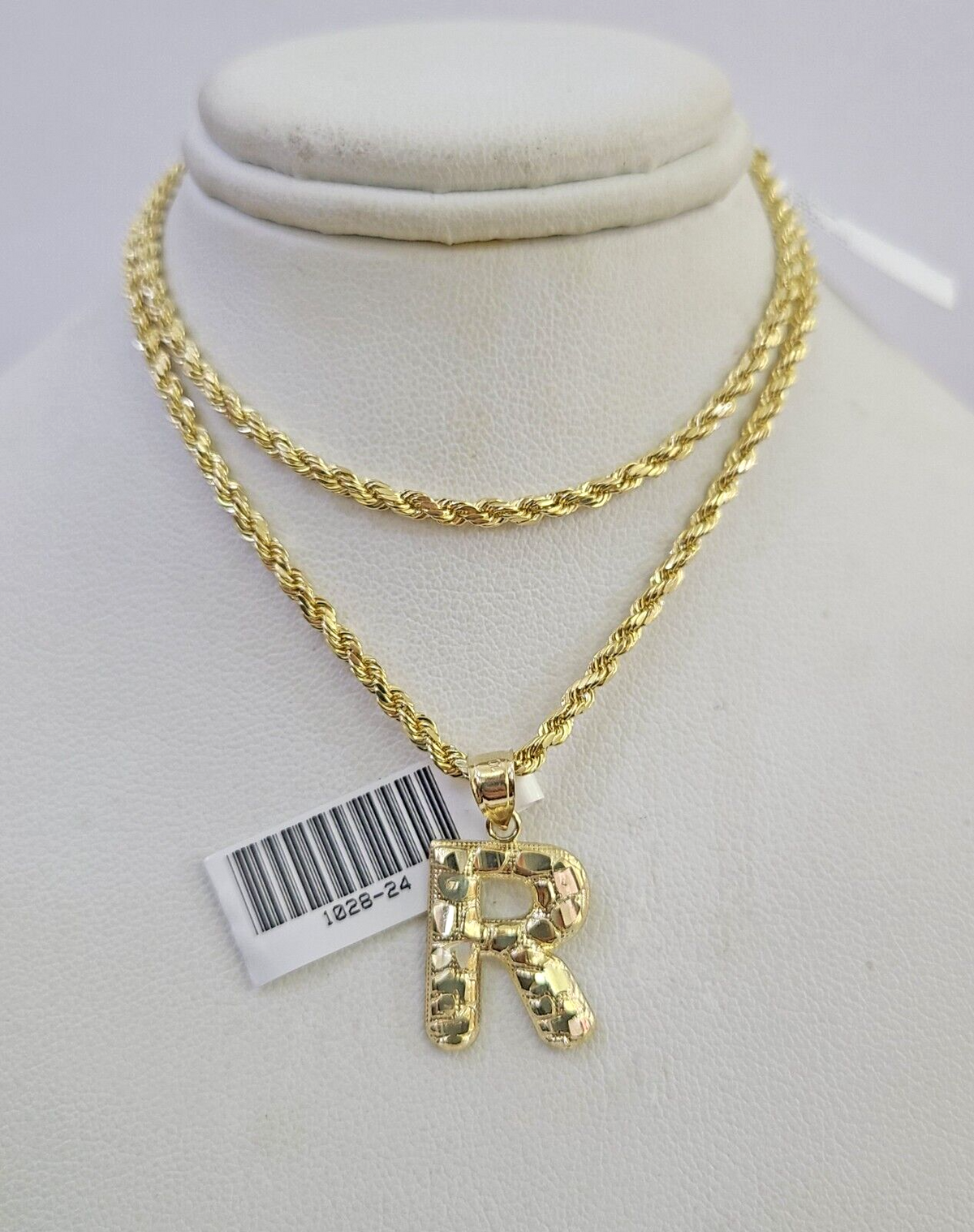 Is Presenting You with This Absolutely Stunning Real 10k Yellow Gold Rope Chain 2.5mm, 16-26 Inches Lobster Lock with R Initial/Letter/Alphabet. The links are 10K GOLD and are very strong. 18"-A3B1 A1B1