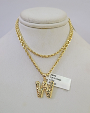 Is Presenting You with This Absolutely Stunning Real 10k Yellow Gold Rope Chain 2.5mm, 16-26 Inches Lobster Lock with W Initial/Letter/Alphabet. The links are 10K GOLD and are very strong. 18"-A3B1 A1B3