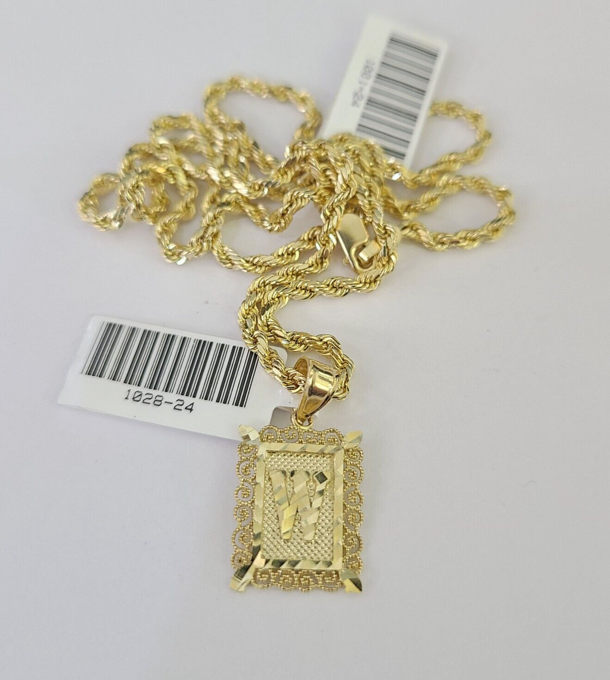 Is Presenting You with This Absolutely Stunning Real 10k Yellow Gold Rope Chain 2.5mm, 16-26 Inches Lobster Lock with W Initial/Letter/Alphabet. The links are 10K GOLD and are very strong. 18"-A3B1 A1B1 P12804