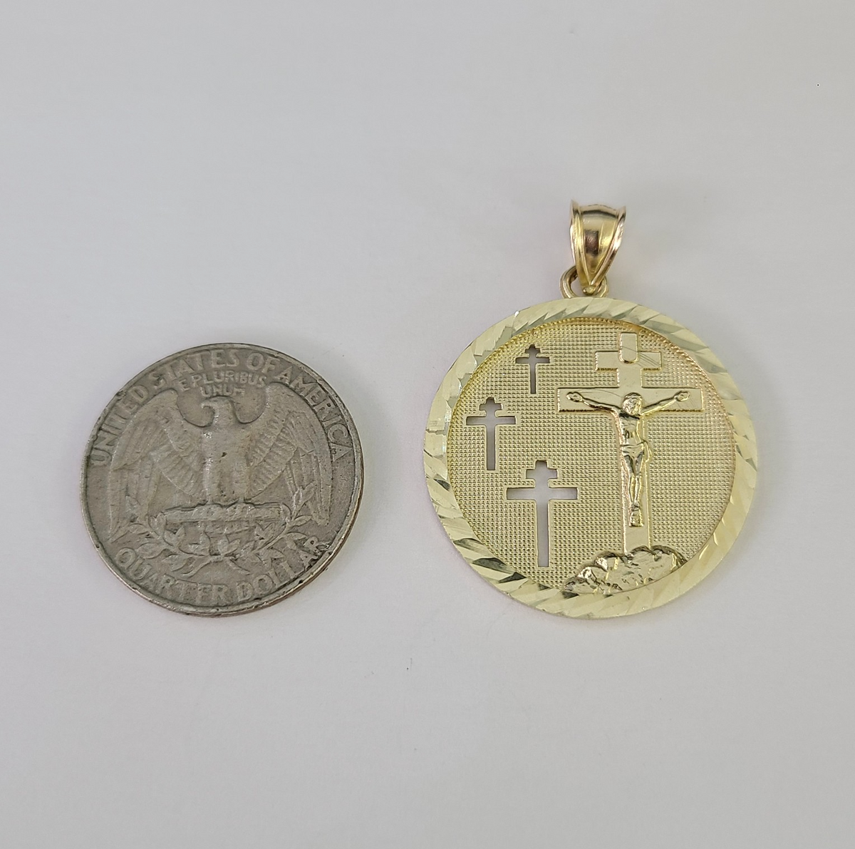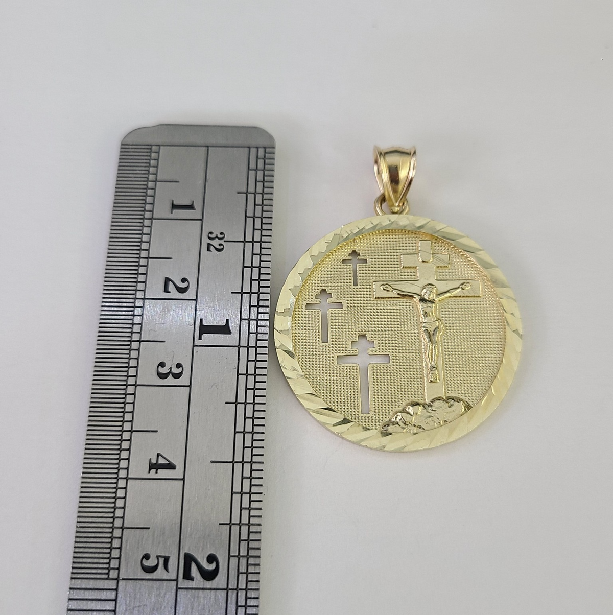 Genuine 10k Yellow Gold Miami Cuban Necklace 5mm Chain with Jesus Medallion Cross Charm. The Various length of the Chain are 18"-28" with Jesus Medallion Cross Charm. The pendants are unique in design and considered durable too. If you are not happy with the way it looks or feels, we do offer 30 - Days FREE Return shipping. Contact us for more information.