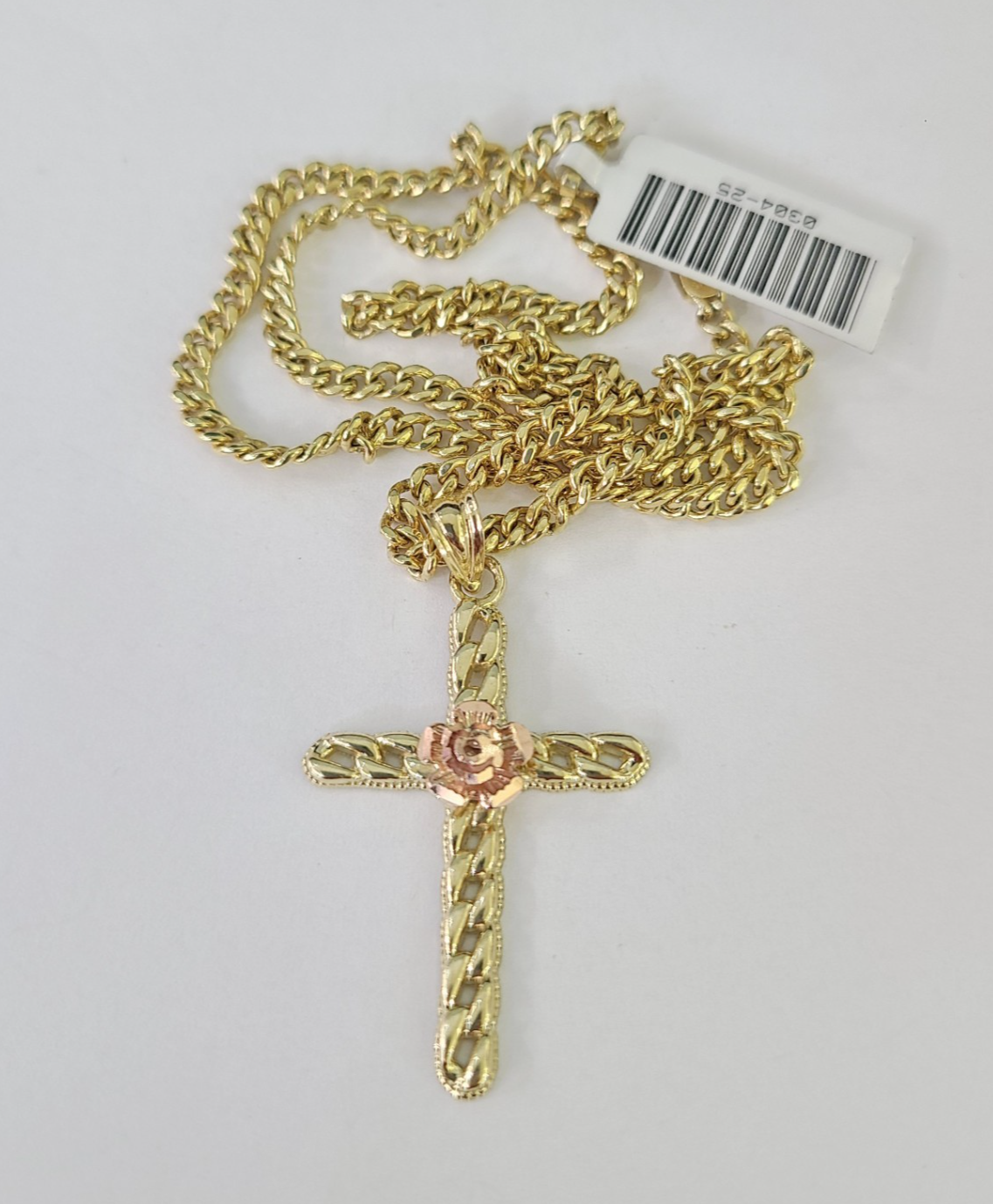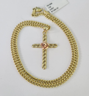 10kt Gold Miami Cuban Chain Jesus Rose Cross Charm Pendant 3mm 18-28 Inch Necklace SALE