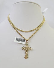 Is Presenting You with This Absolutely Stunning Real 10k Yellow Gold Miami Cuban Chain 3mm, 18"-30" with Jesus Cross Charm, Lobster Lock. The links are 10K GOLD and are very strong. These Beautiful Chains will not tarnish, discolor, or fade because they are Pure 10K Gold. We also have them in various another length. Please feel free to contact us if you have any queries regarding the item. 20"-A5B0 A2B3