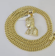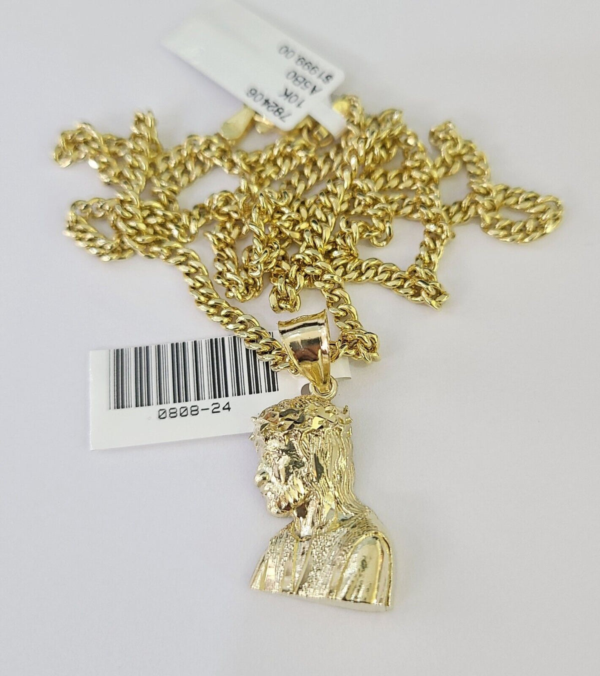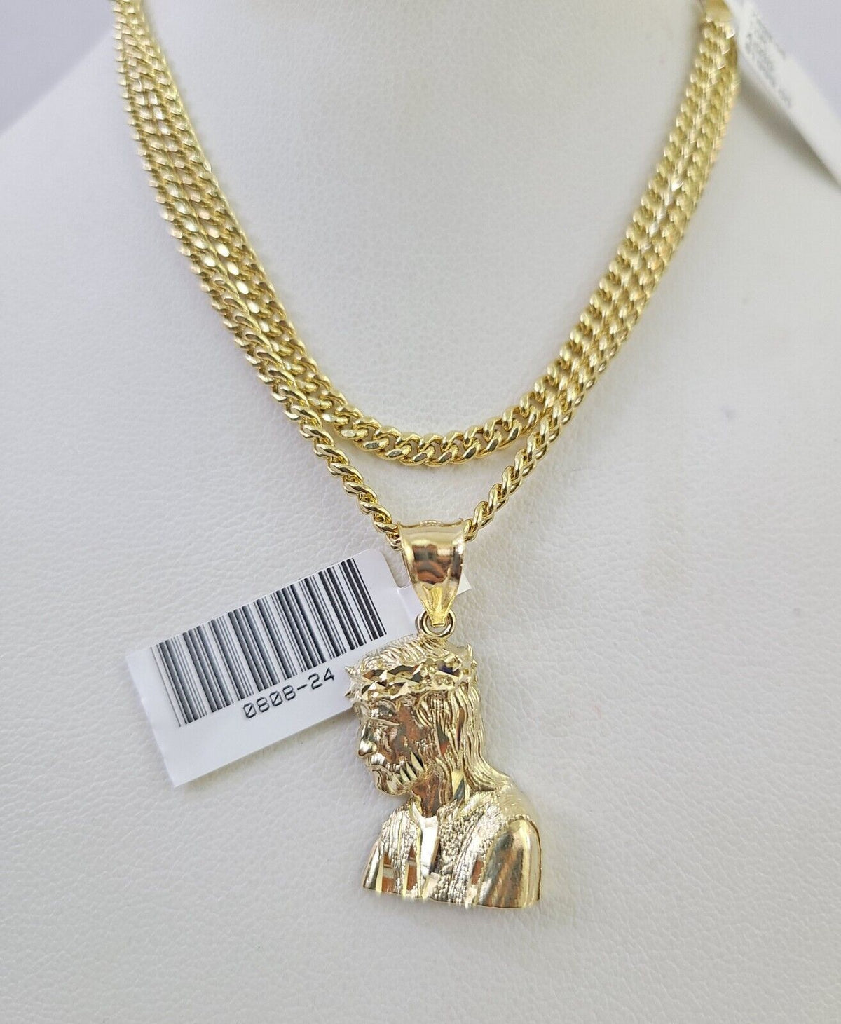 Is Presenting You with This Absolutely Stunning Real 10k Yellow Gold Miami Cuban Chain 3mm, 18"-28" with Jesus Head Charm, Lobster Lock. The links are 10K GOLD and are very strong. These Beautiful Chains will not tarnish, discolor, or fade because they are Pure 10K Gold. We also have them in various another length. Please feel free to contact us if you have any queries regarding the item. 20"-A5B0 A1B8