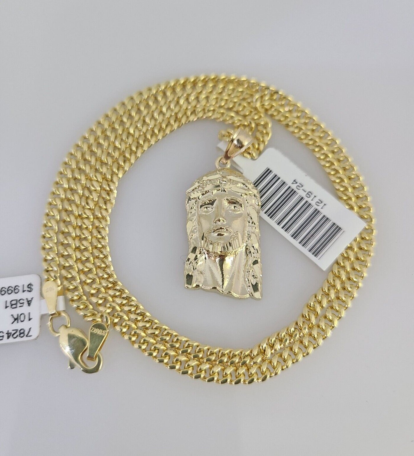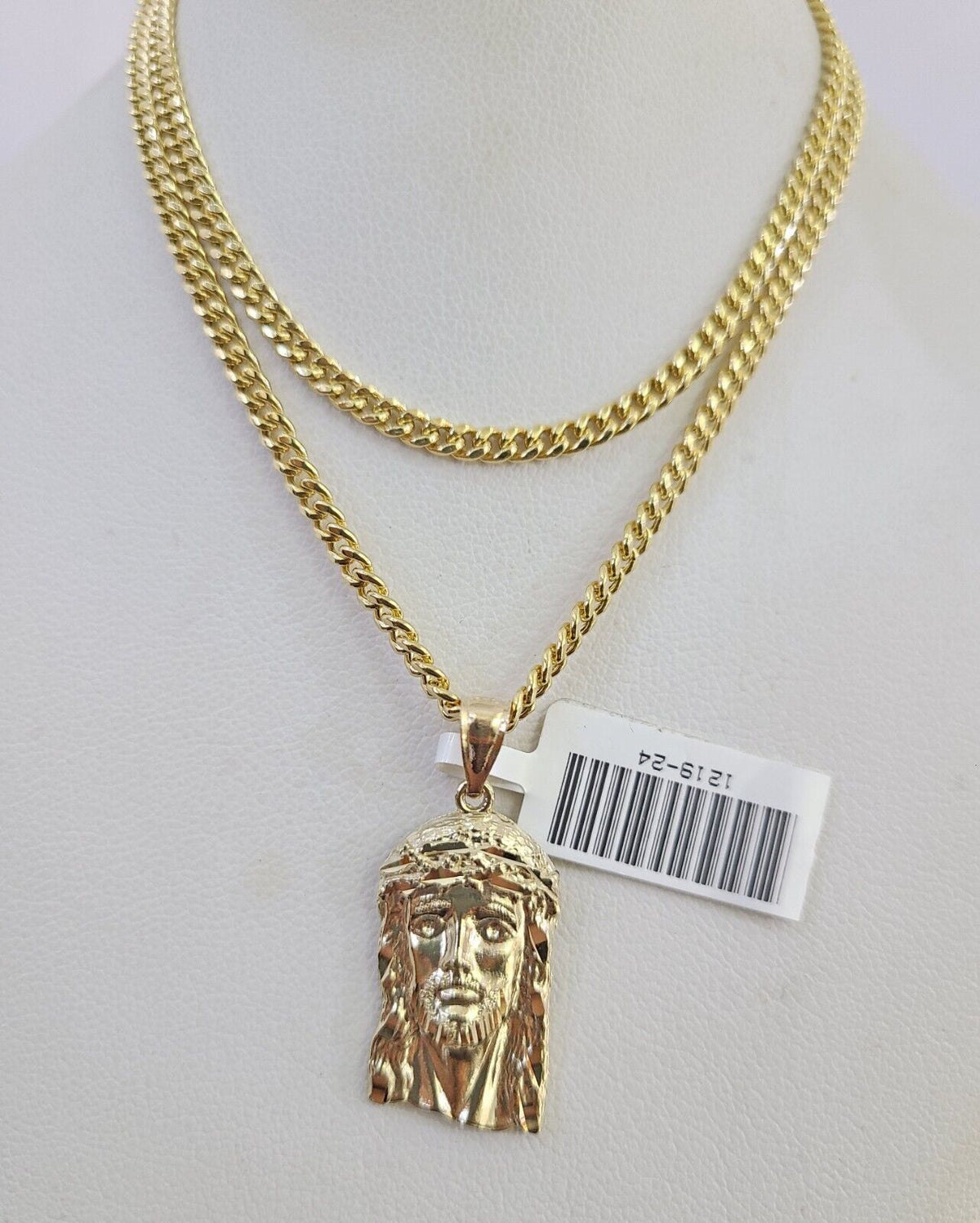 Genuine 10k Yellow Gold Miami Cuban Necklace 3mm Chain With Jesus Head Charm. The Various length of the Chain are 18"-28" with Jesus Head Charm. The pendants are unique in design and considered durable too. If you are not happy with the way it looks or feels, we do offer 30 - Days FREE Return shipping. Contact us for more information.