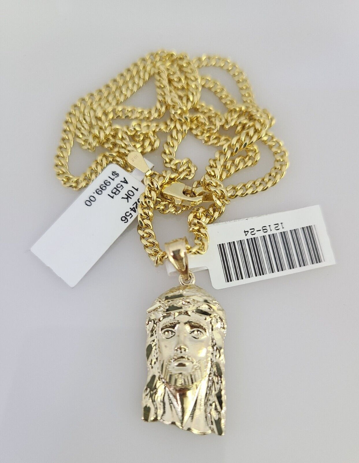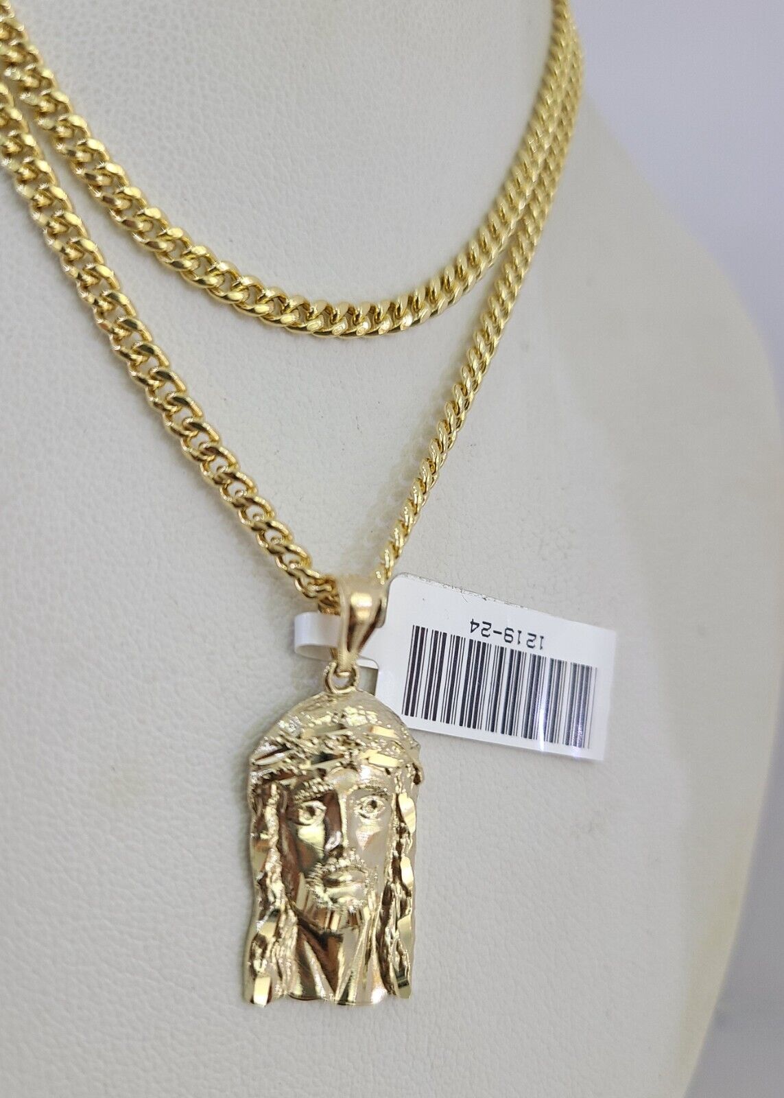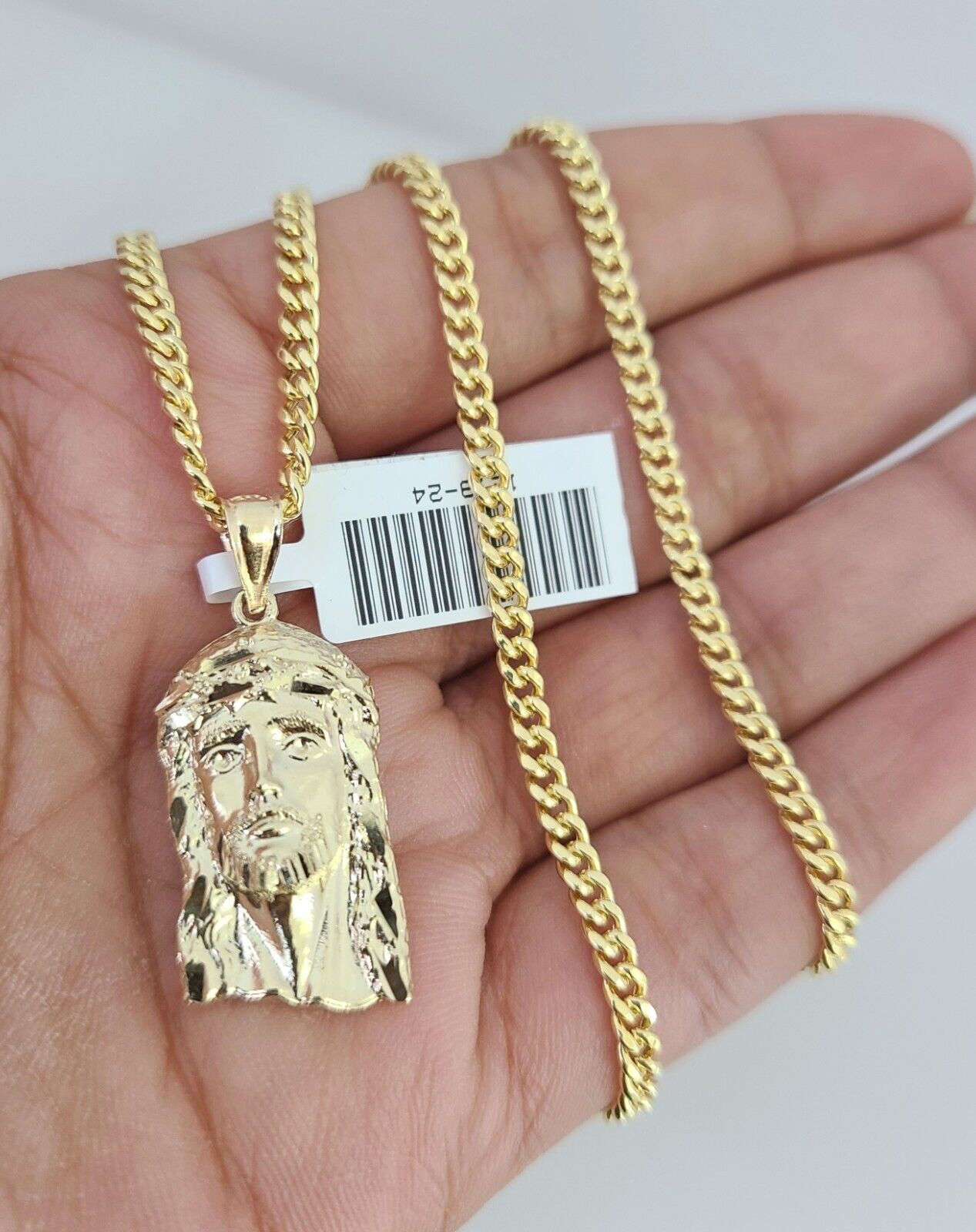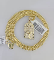 10kt Gold Miami Cuban Chain Jesus Head Charm Pendant 3mm 18-28 Inch Necklace SALE
