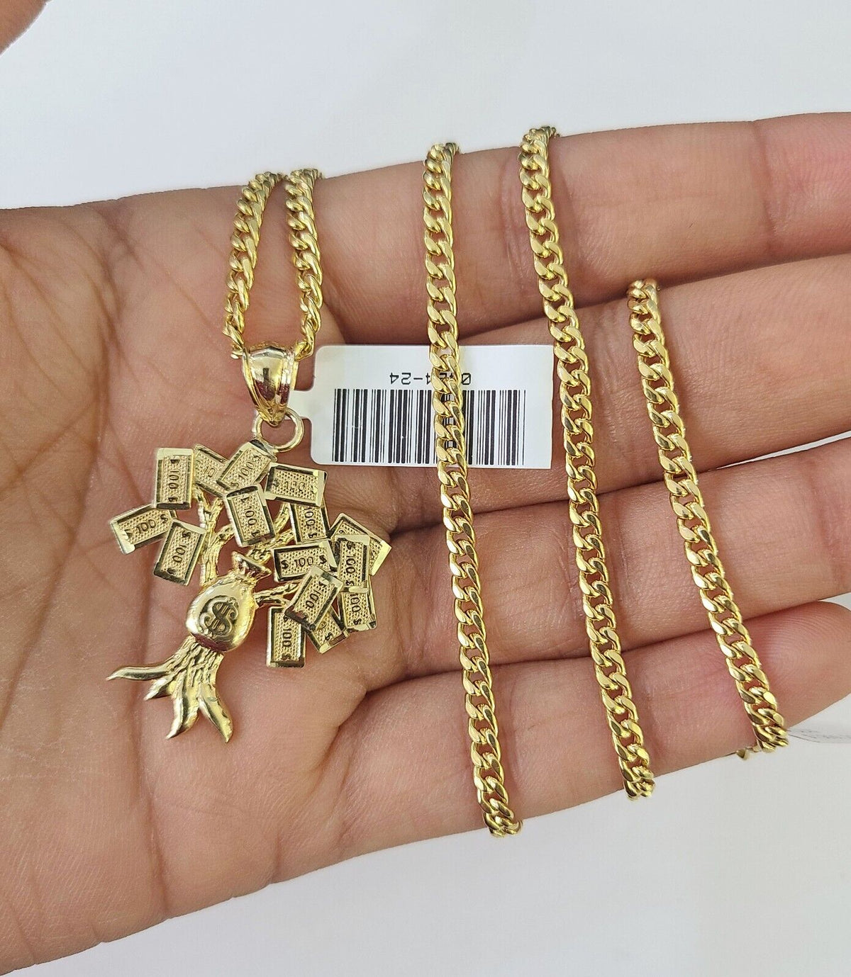 Is Presenting You with This Absolutely Stunning Real 10k Yellow Gold Miami Cuban Chain 3mm, 20"-30" with Money Tree Charm, Lobster Lock. The links are 10K GOLD and are very strong. These Beautiful Chains will not tarnish, discolor, or fade because they are Pure 10K Gold. We also have them in various another length. Please feel free to contact us if you have any queries regarding the item. 20"-A5B0 A2B4