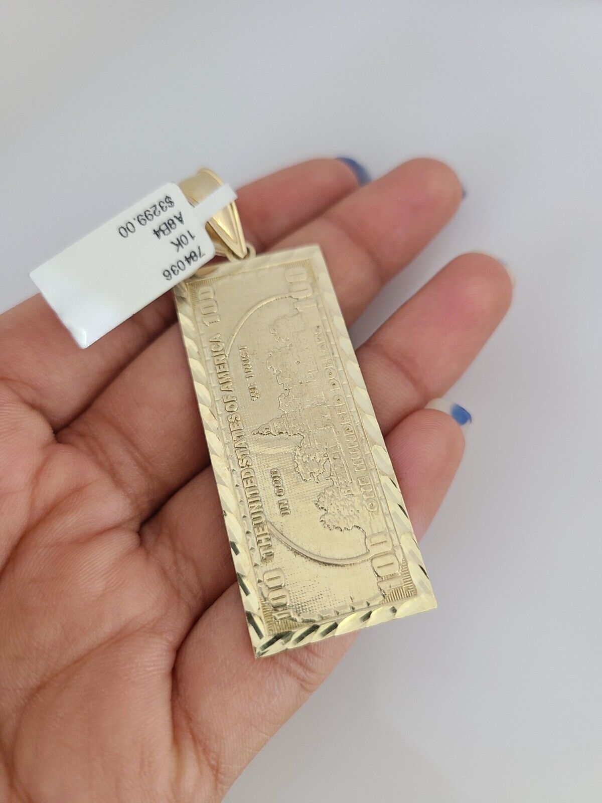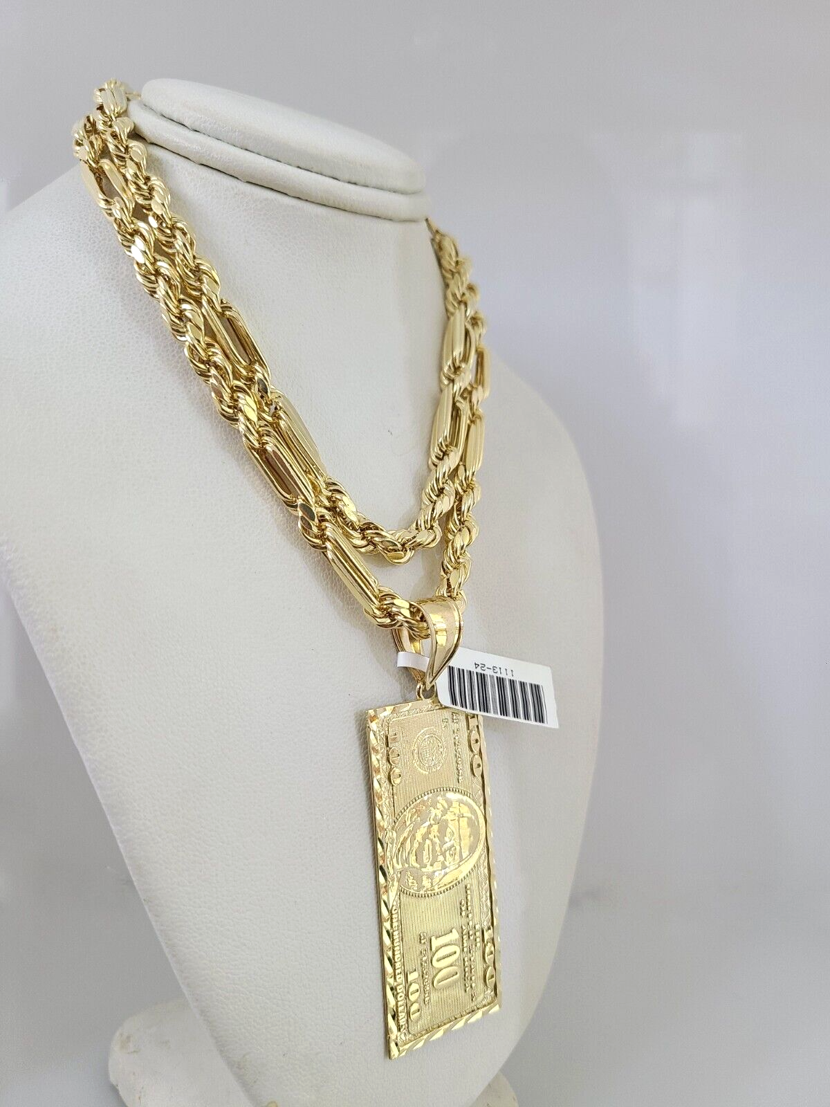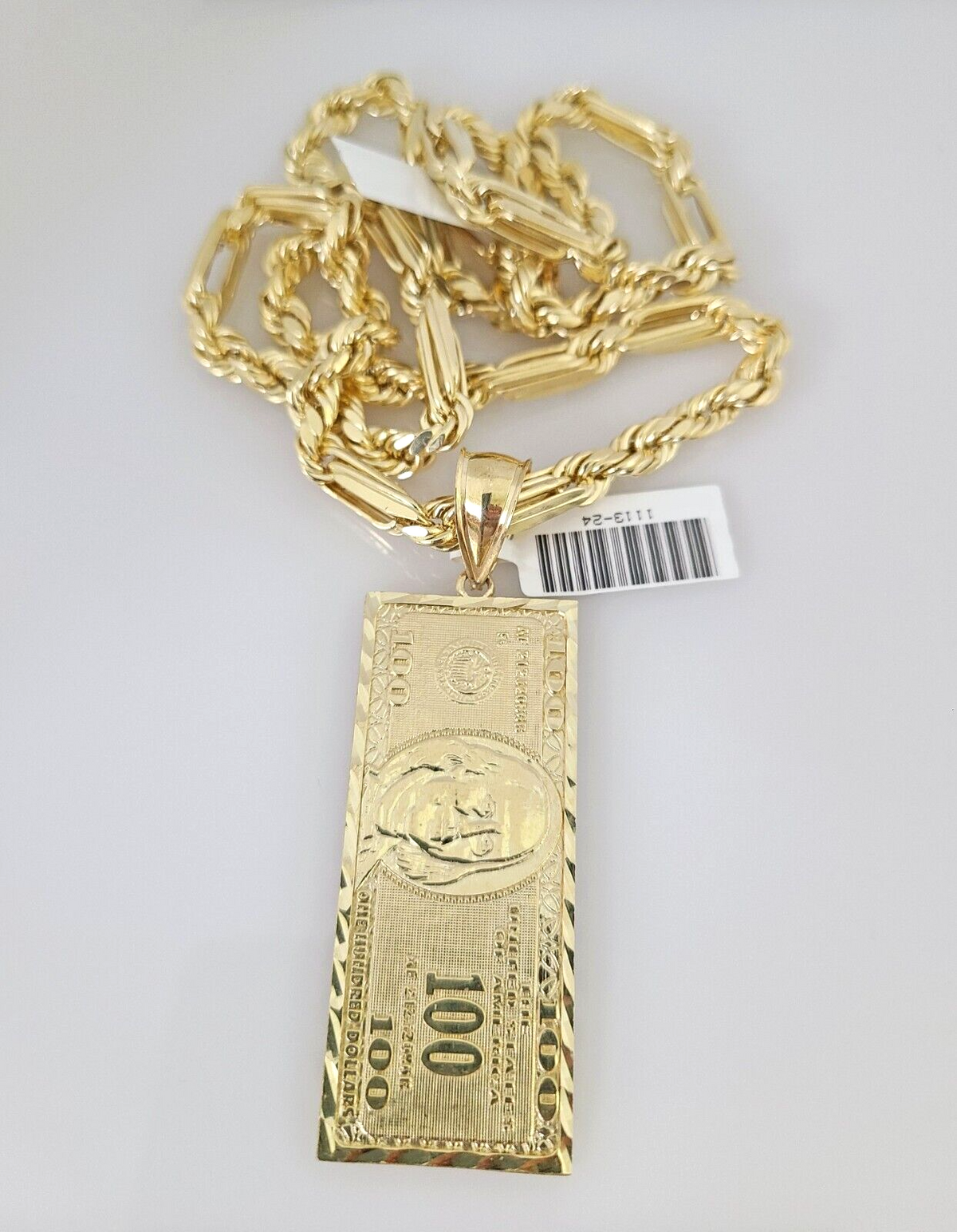 10k Gold Milano Rope Chain 100 Dollar Bill Charm Pendant Set 20"-26'' Inches Necklace