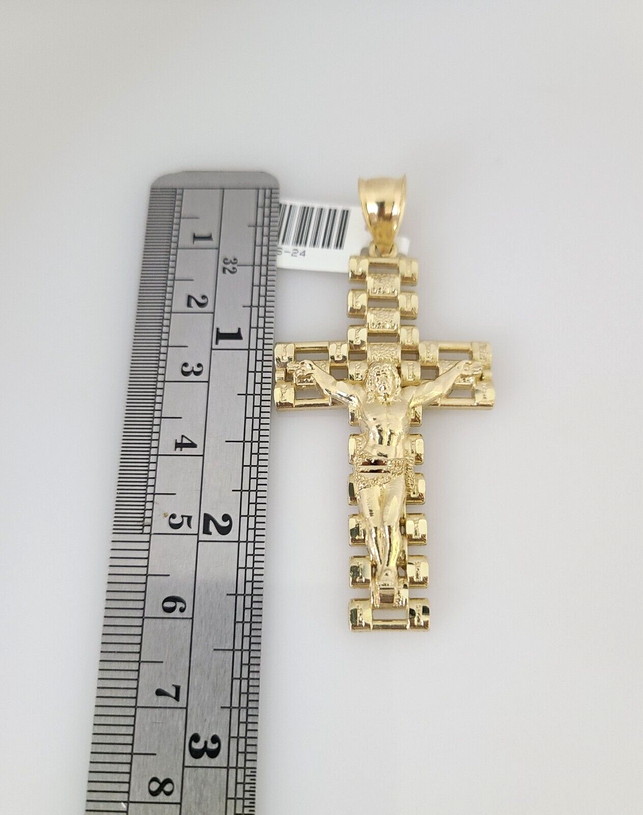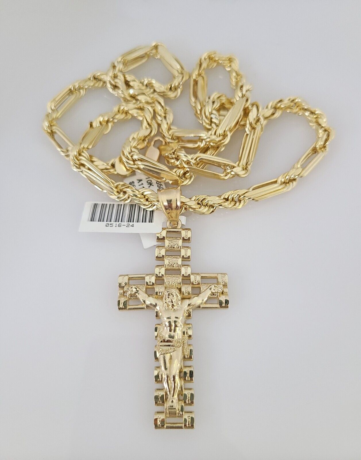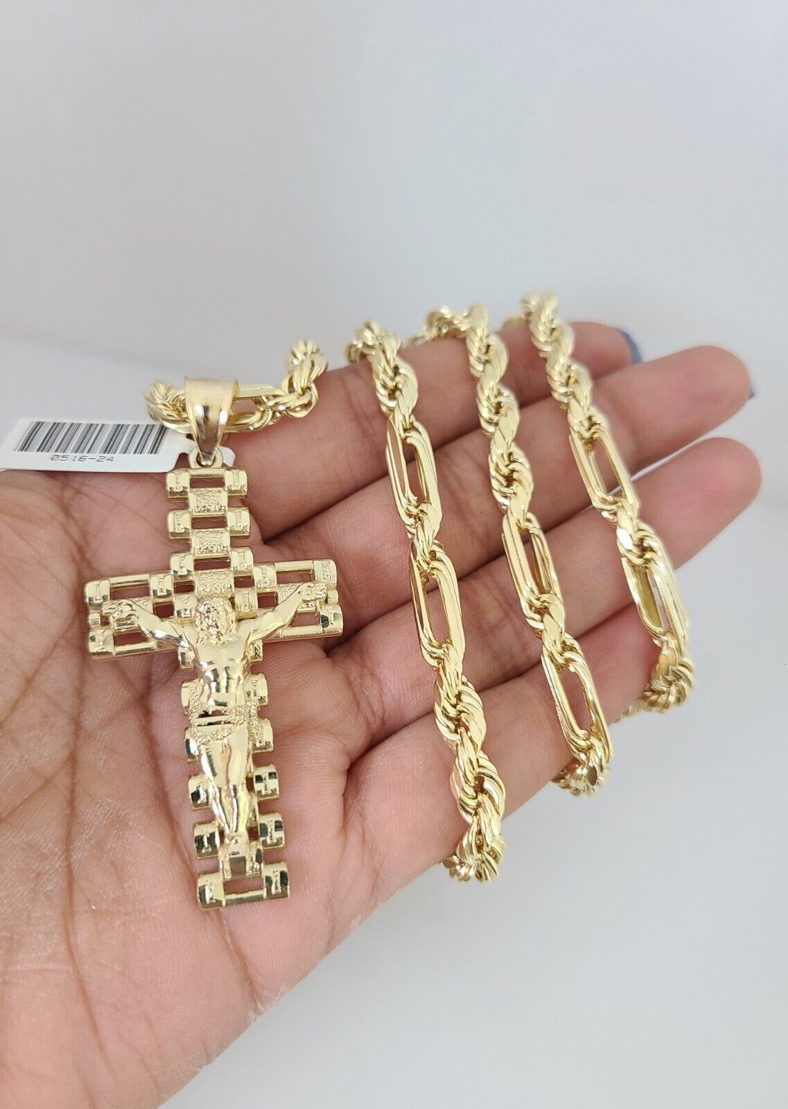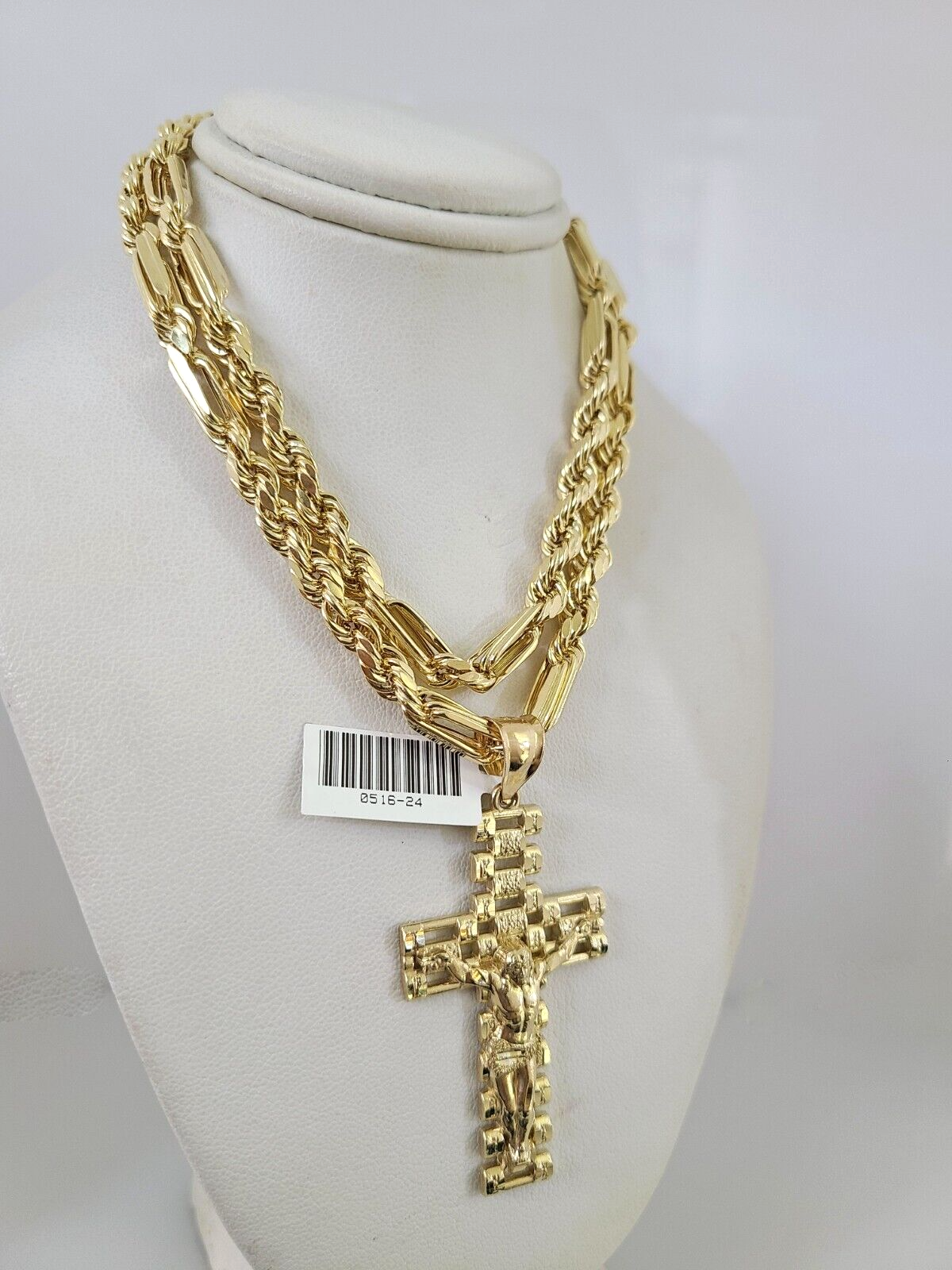 10k Gold Milano Rope Chain Jesus Cross Charm Pendant Set 20"-26'' Inches Necklace
