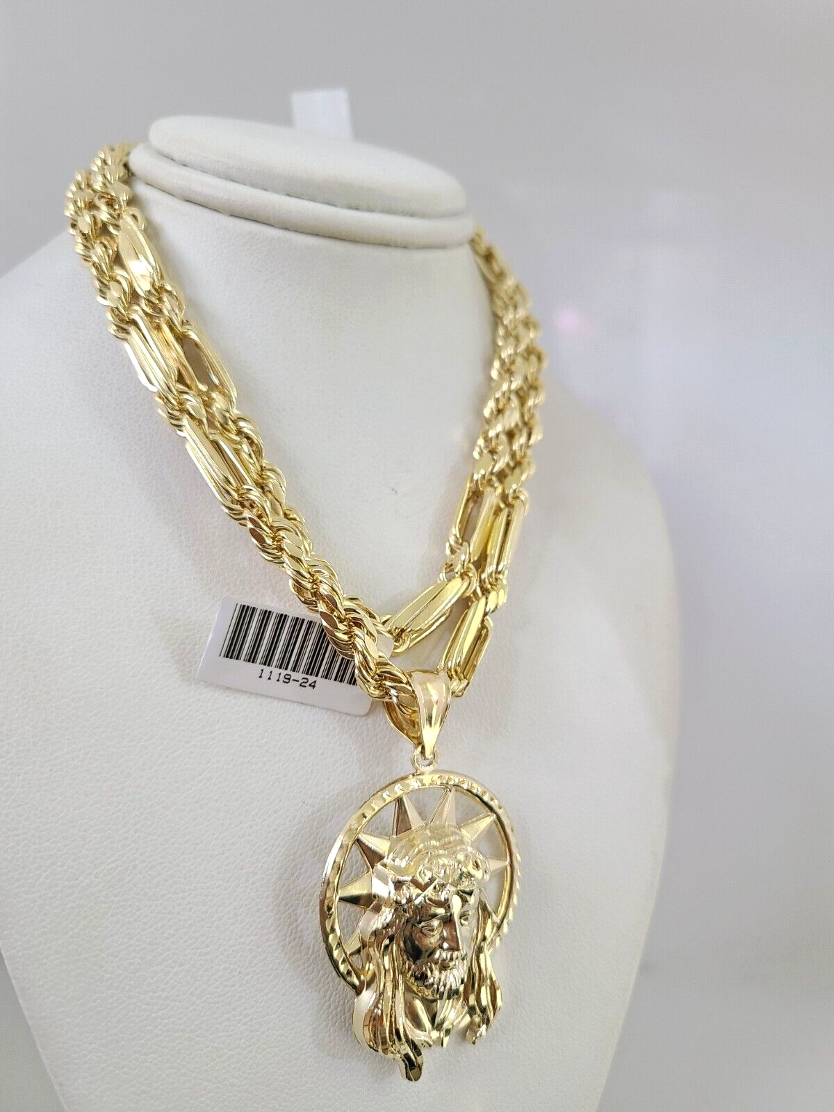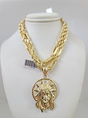 10k Gold Milano Rope Chain Jesus Head Charm Pendant Set 20"-26'' Inches Necklace