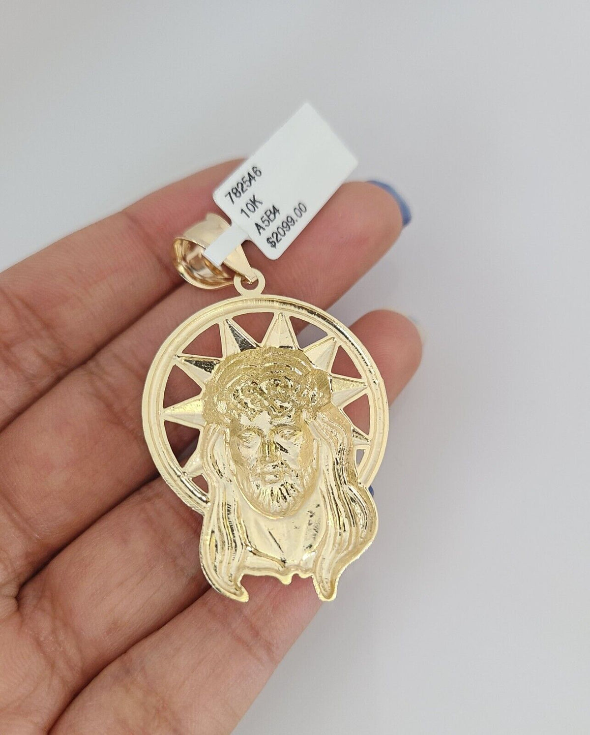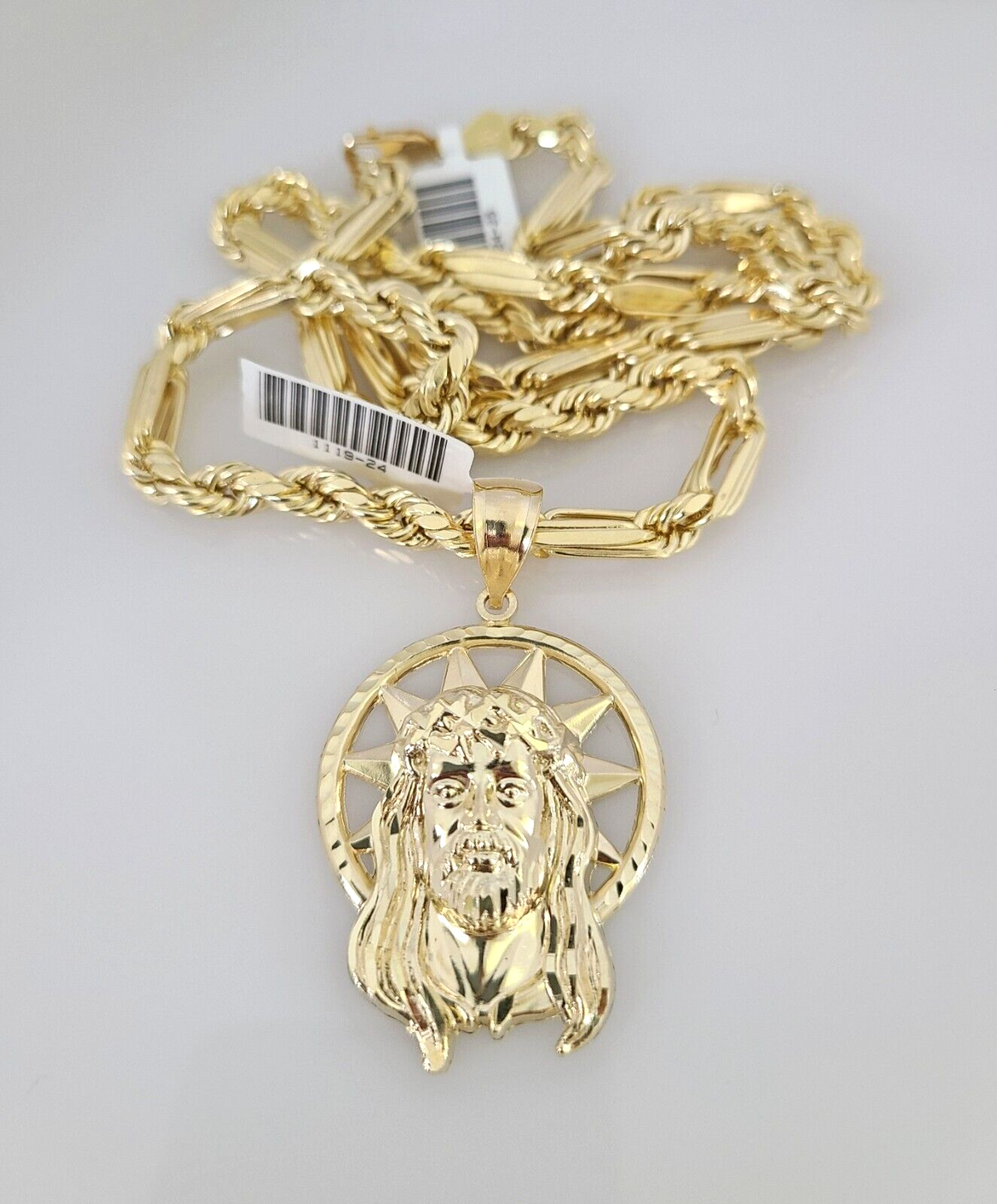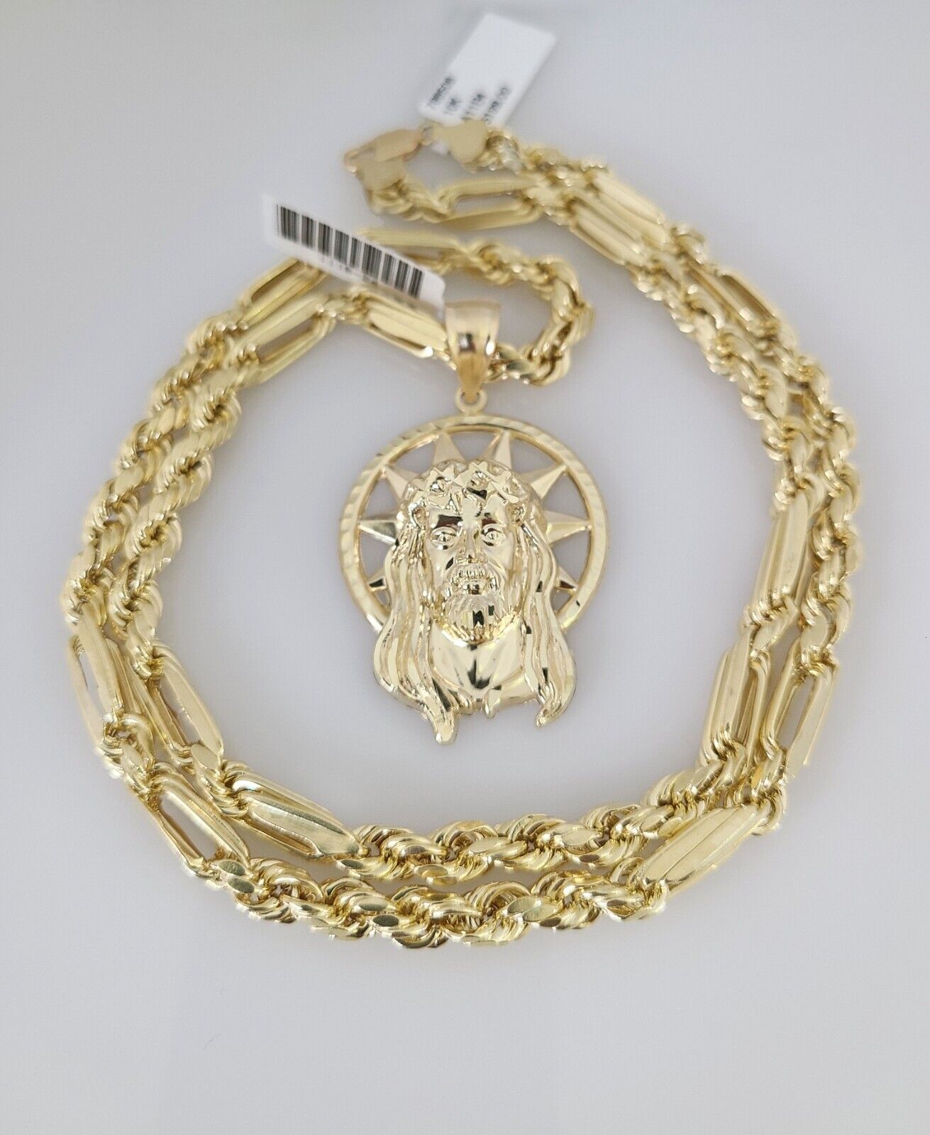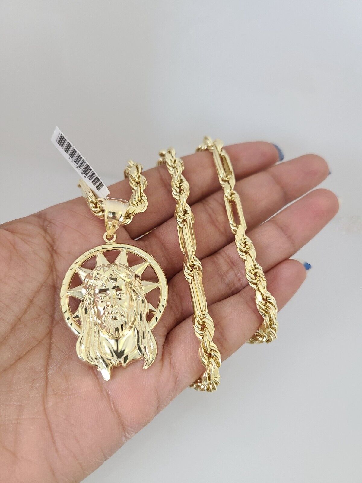 Genuine 10k Yellow Gold Milano Rope Chain 20-26 Inch 6mm Necklace with Jesus Head Charm design as a SET. The Various length of the Chain are 20-26 Inches. If you are not happy with the way it looks or feels, we do offer 30 - Days FREE Return shipping. Contact us for more information.