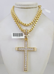 10k Gold Necklace Byzantine Box Jesus Cross Pendant Charm 20"-30" SET 4mm Chain - 20