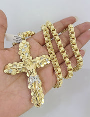 10k Gold Necklace Byzantine Jesus Cross Pendant Charm 20"-30" SET 7mm Chain - 20
