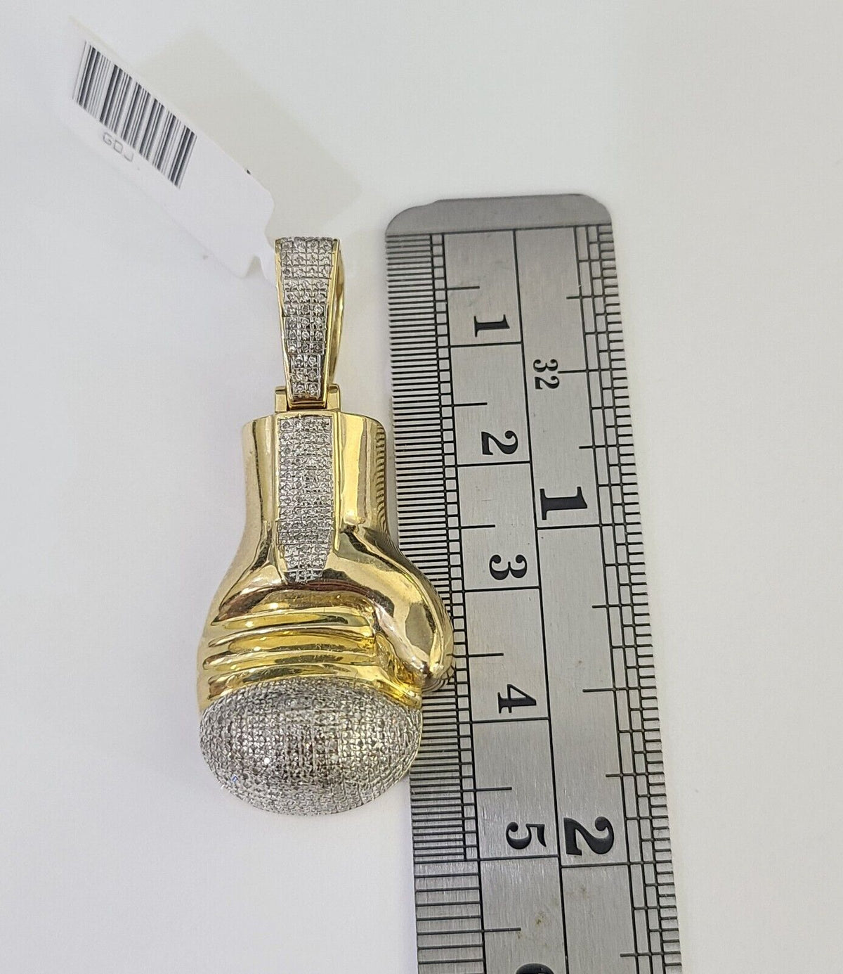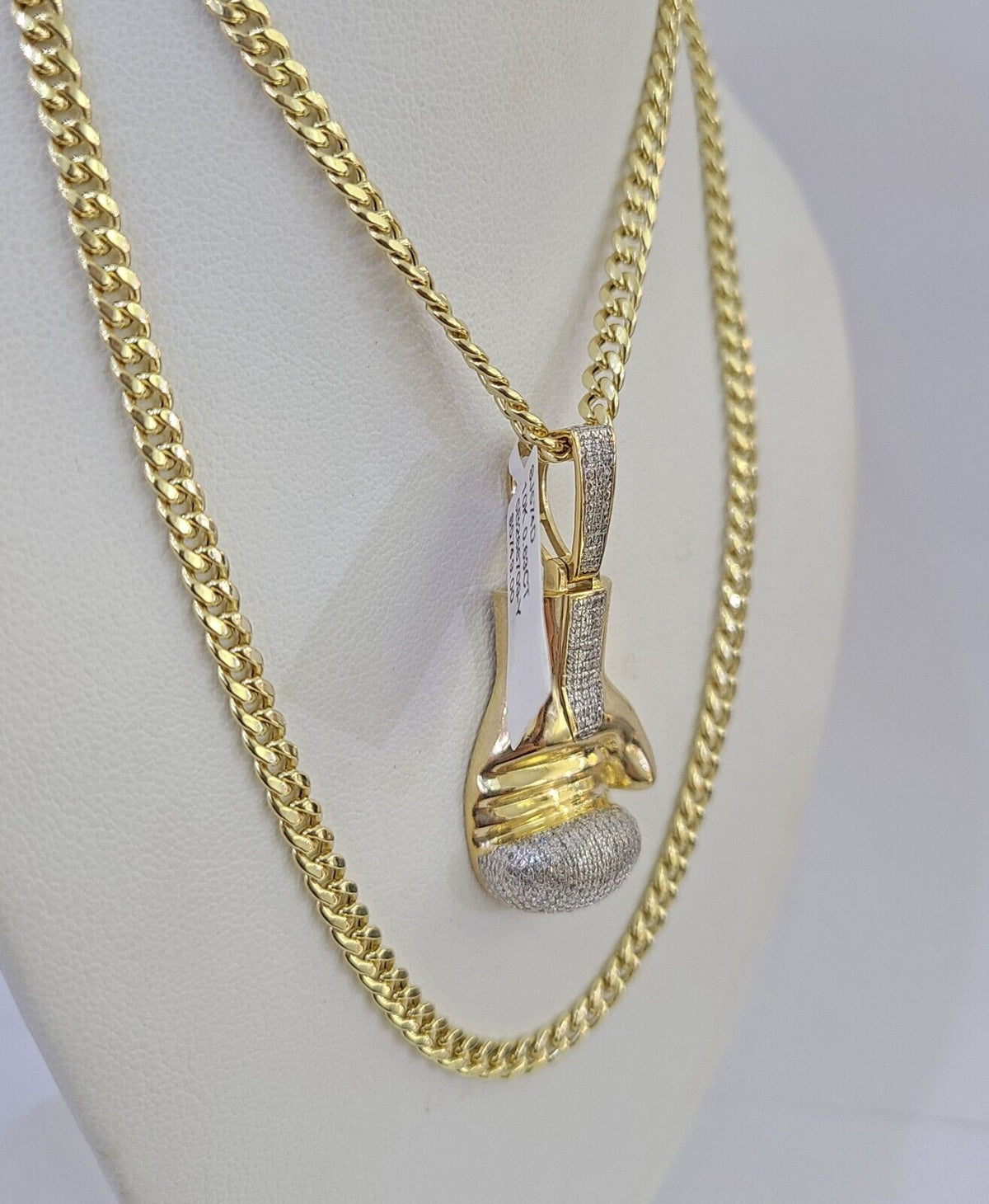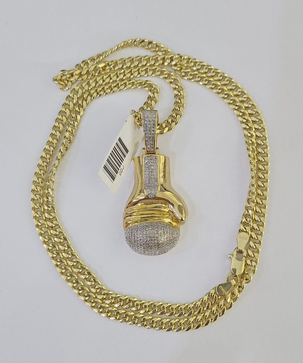 Is Presenting You with This Absolutely Stunning Real 10k Yellow Gold Miami Cuban Link Chain 4.5mm, 20 inch-28 inches, Lobster Lock with a 10k Boxing Glove Diamond Pendant. The pendant is 1.5-2 inch long (approx.).��These Beautiful chains and Pendant will not tarnish, discolor, or fade because they are Pure 10K Gold. 24"-A9B0��