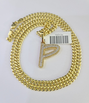 10k Miami Cuban Chain Diamond P Initial Charm Set 4mm 18"-28" Necklace Gold