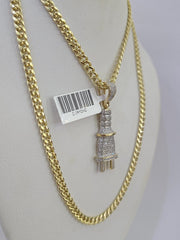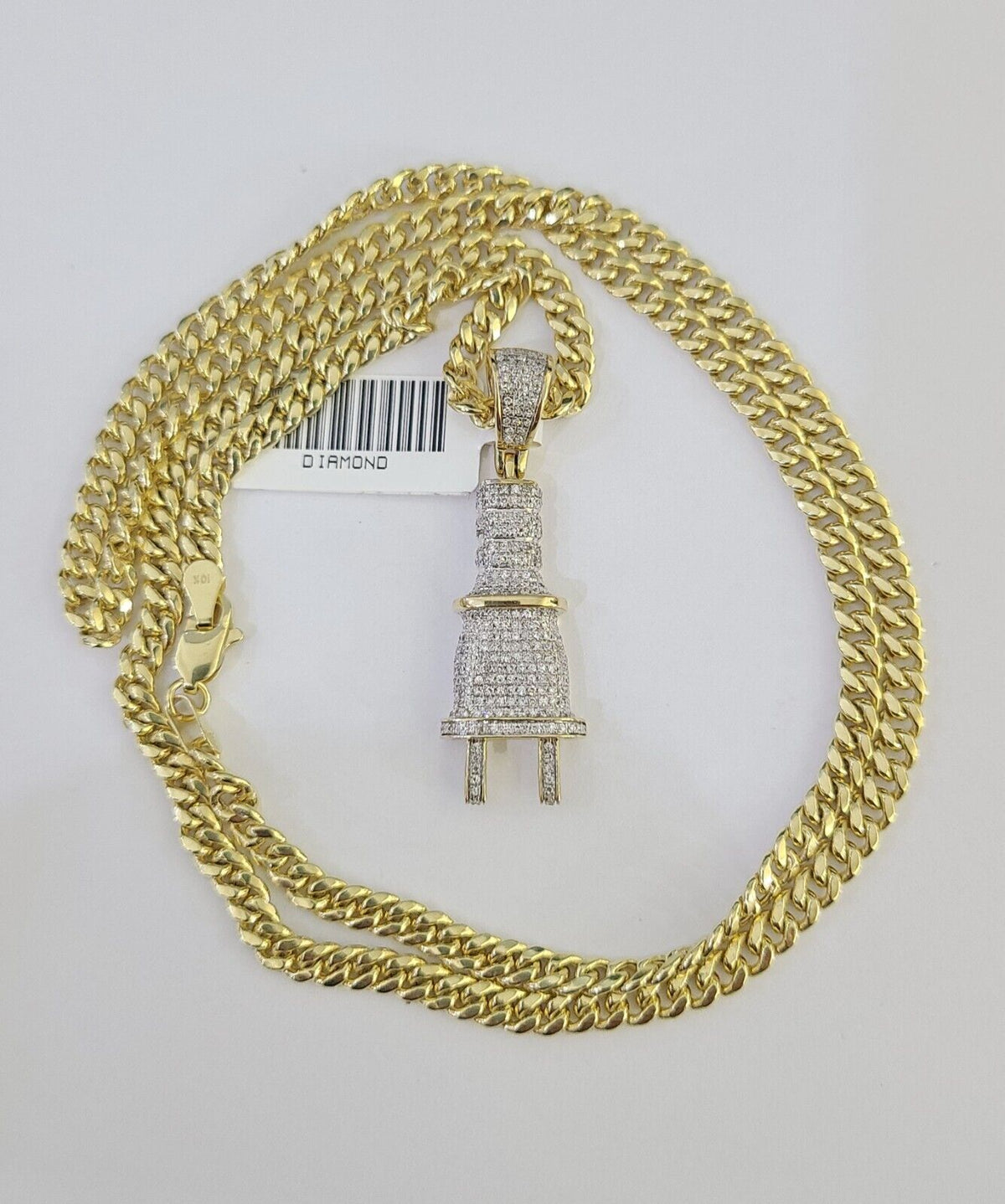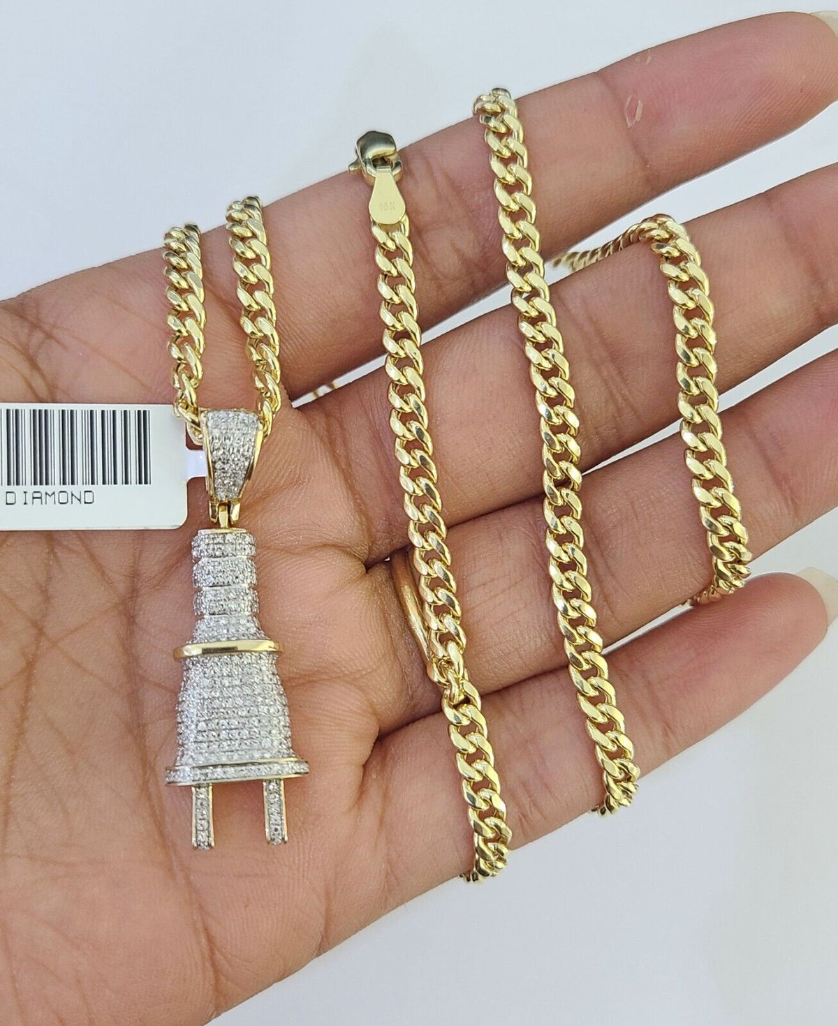 Is Presenting You with This Absolutely Stunning Real 10k Yellow Gold Miami Cuban Link Chain 4.5mm, 20 inch-28 inches, Lobster Lock with a 10k Plug Socket Diamond Pendant. The pendant is 1.5-2 inch long (approx.).��These Beautiful chains and Pendant will not tarnish, discolor, or fade because they are Pure 10K Gold. 24"-A9B0��