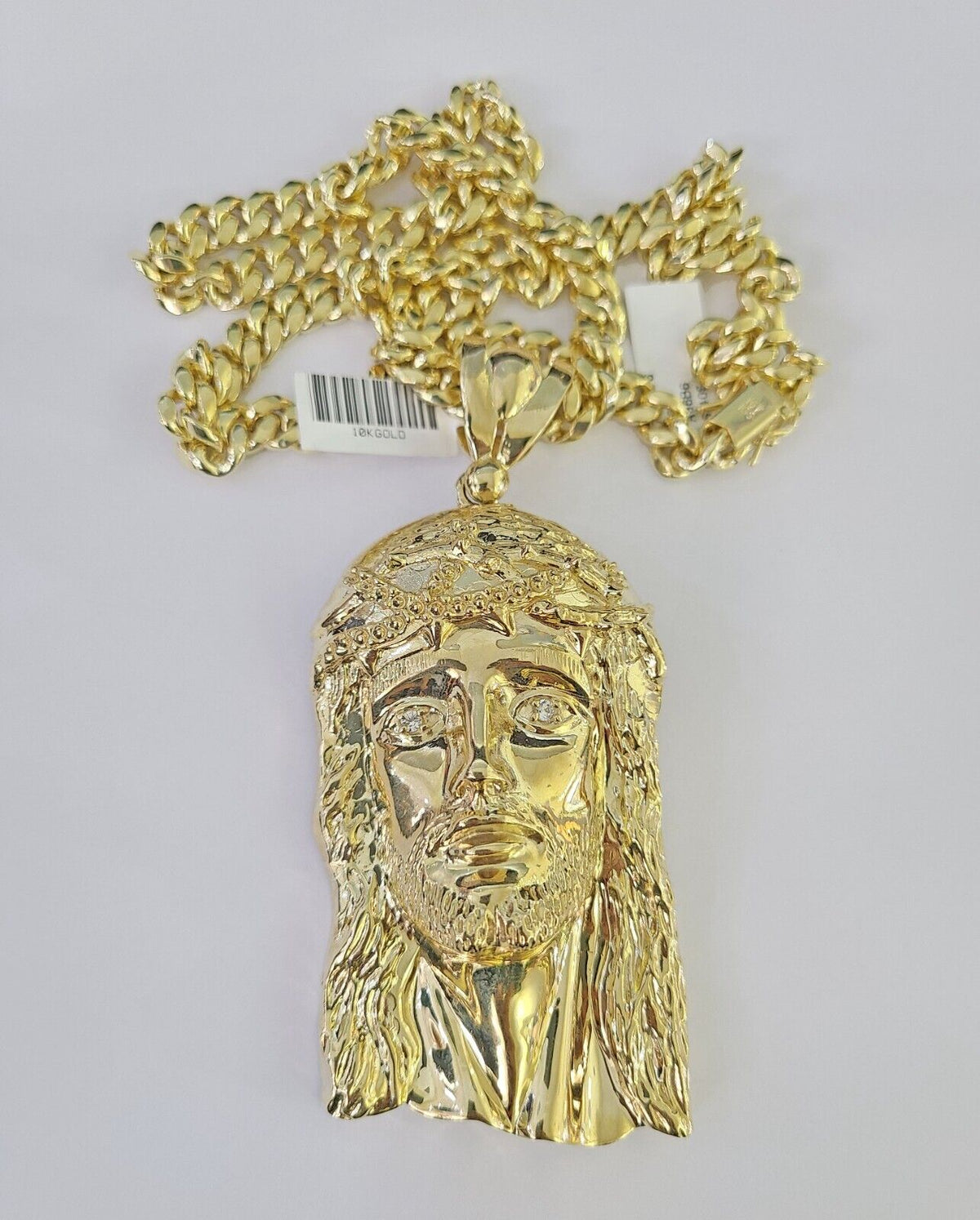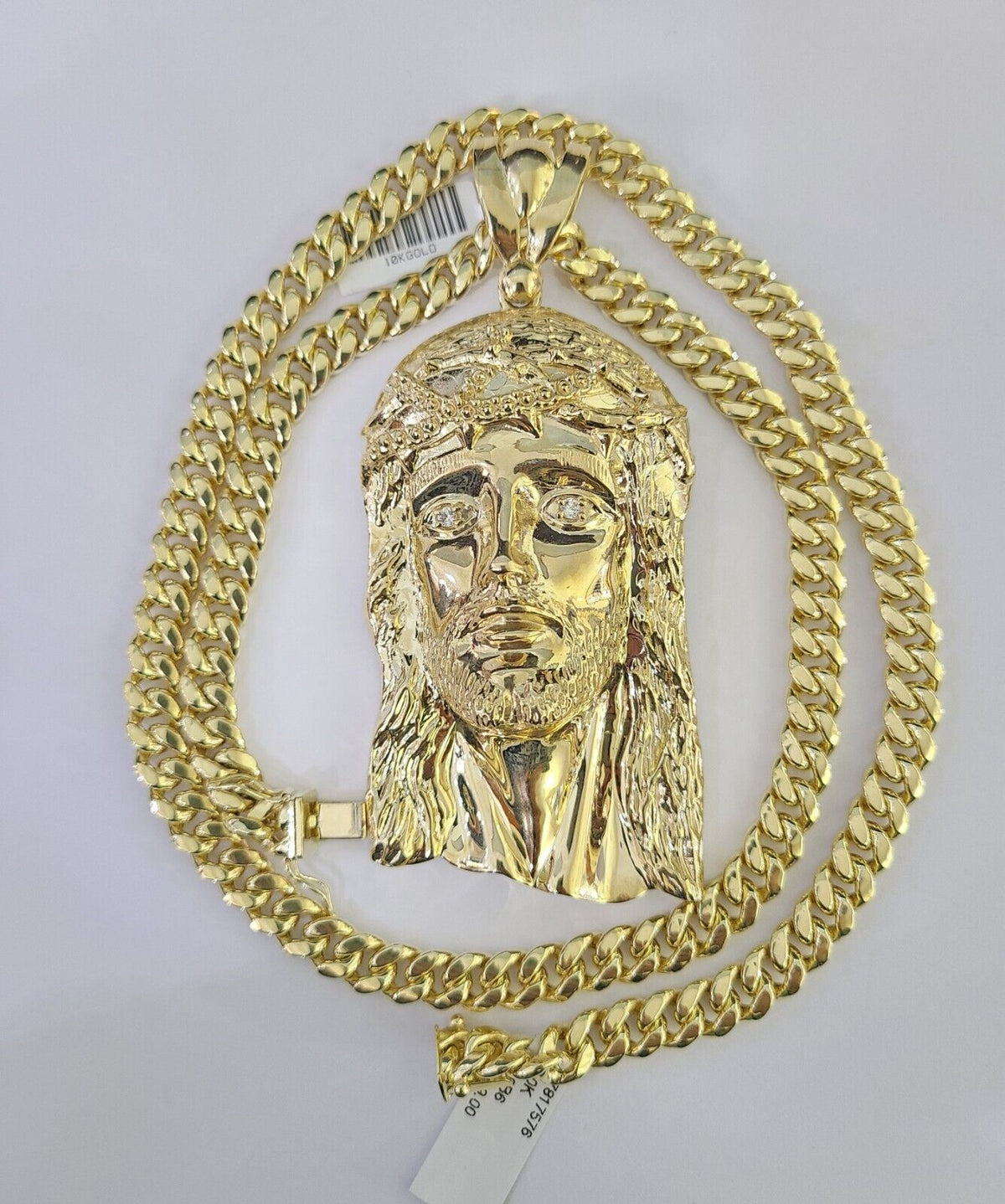 10K Miami Cuban Link Chain Jesus Head Pendent Charm 8mm 20"-30" Necklace Gold - 20" with Charm