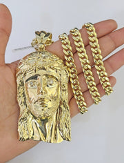 10K Miami Cuban Link Chain Jesus Head Pendent Charm 8mm 20"-30" Necklace Gold