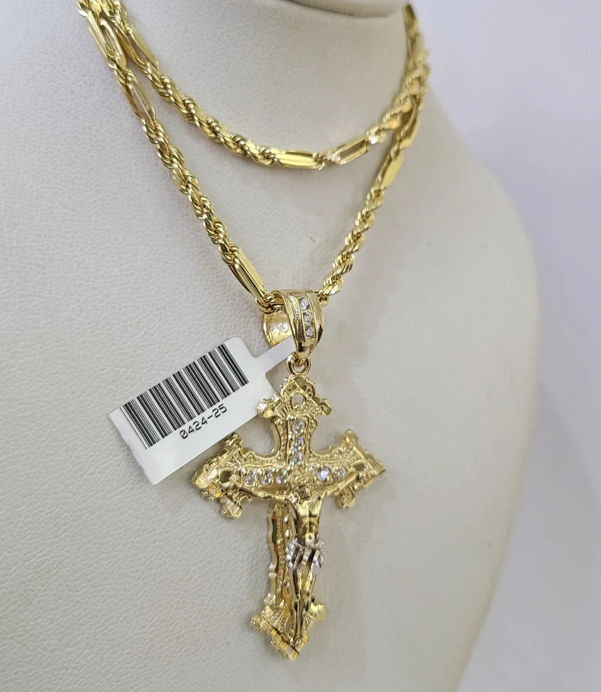 Is Presenting You with This Absolutely Stunning Real 10k Yellow Gold Milano Rope Chain Necklace 3mm 18"-26" Inches with Jesus Cross Charm. This Beautiful Chain will not tarnish, discolor, or fade because they are Pure 10K Gold. We also have them in various another lengths. Please feel free to contact us if you have any queries regarding the item.