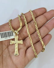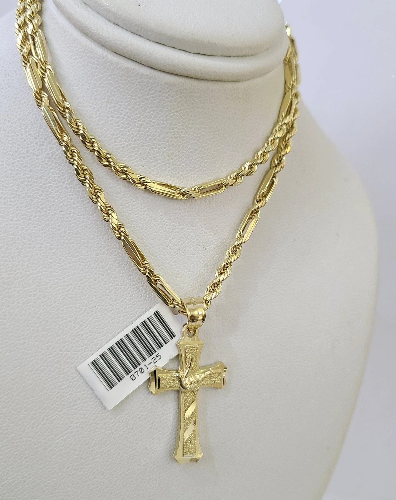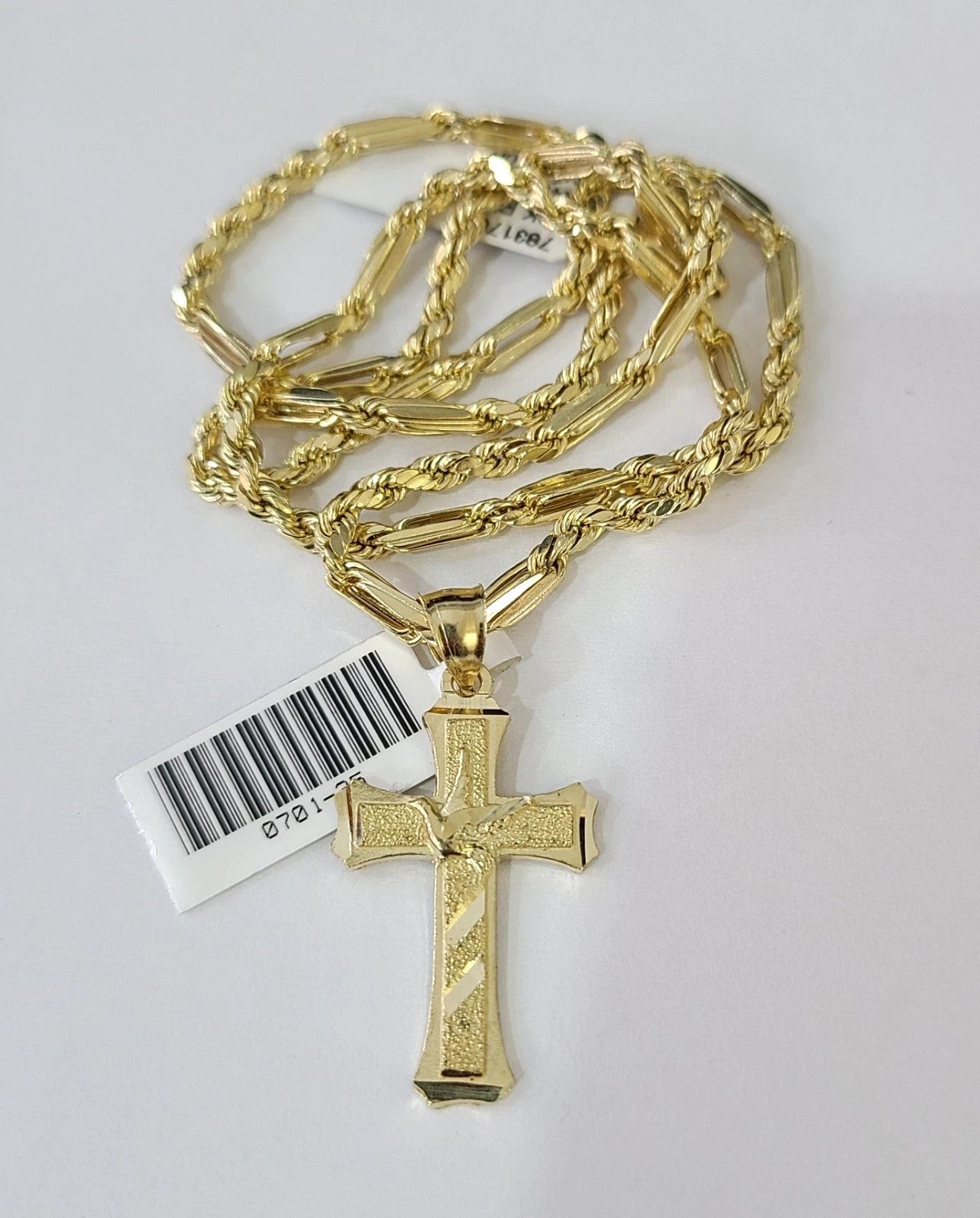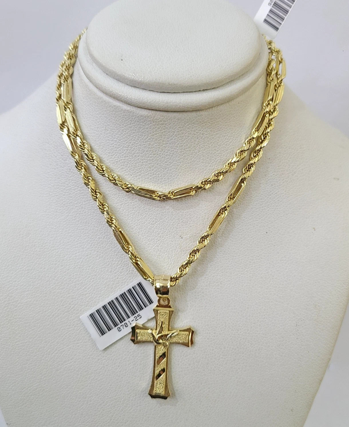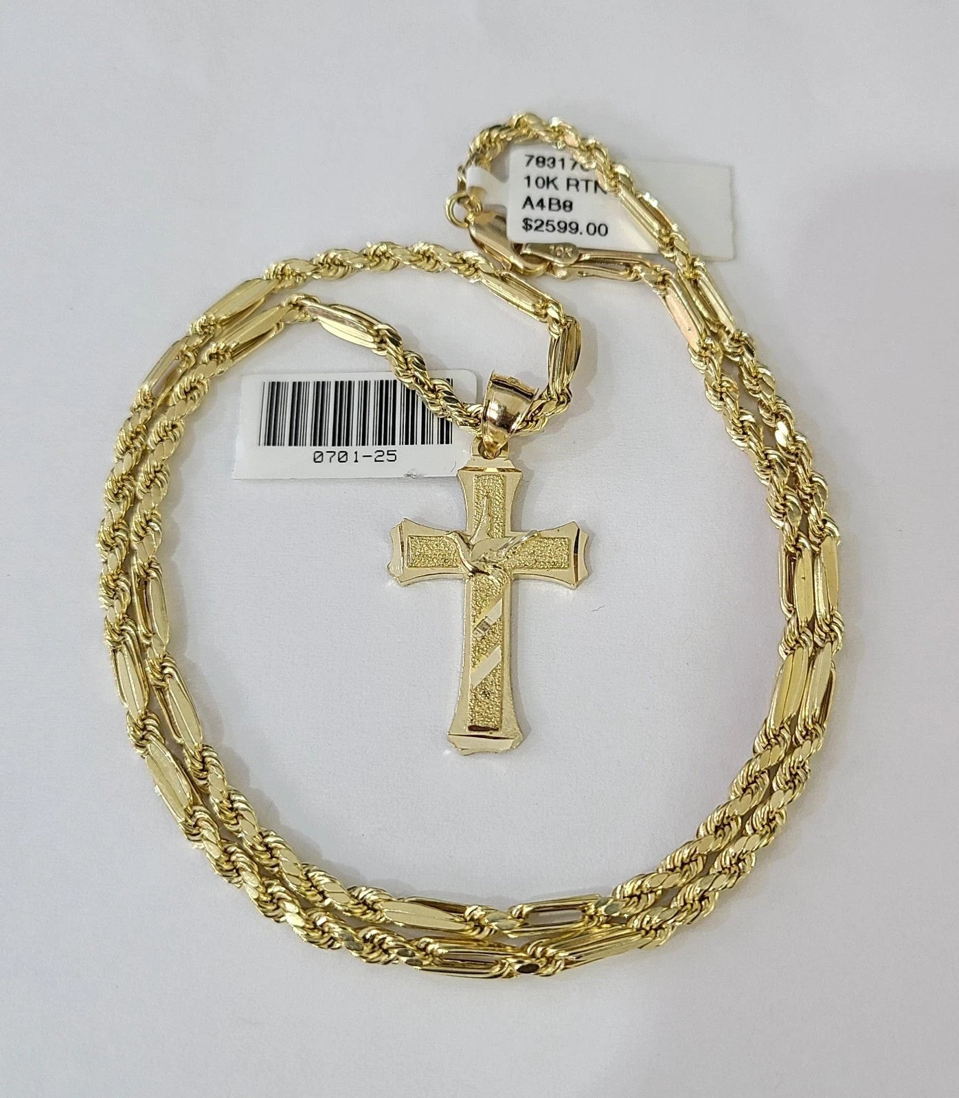 Is Presenting You with This Absolutely Stunning Real 10k Yellow Gold Milano Rope Chain Necklace 3mm 18"-26" Inches with Jesus Cross Charm. This Beautiful Chain will not tarnish, discolor, or fade because they are Pure 10K Gold. We also have them in various another lengths. Please feel free to contact us if you have any queries regarding the item.
