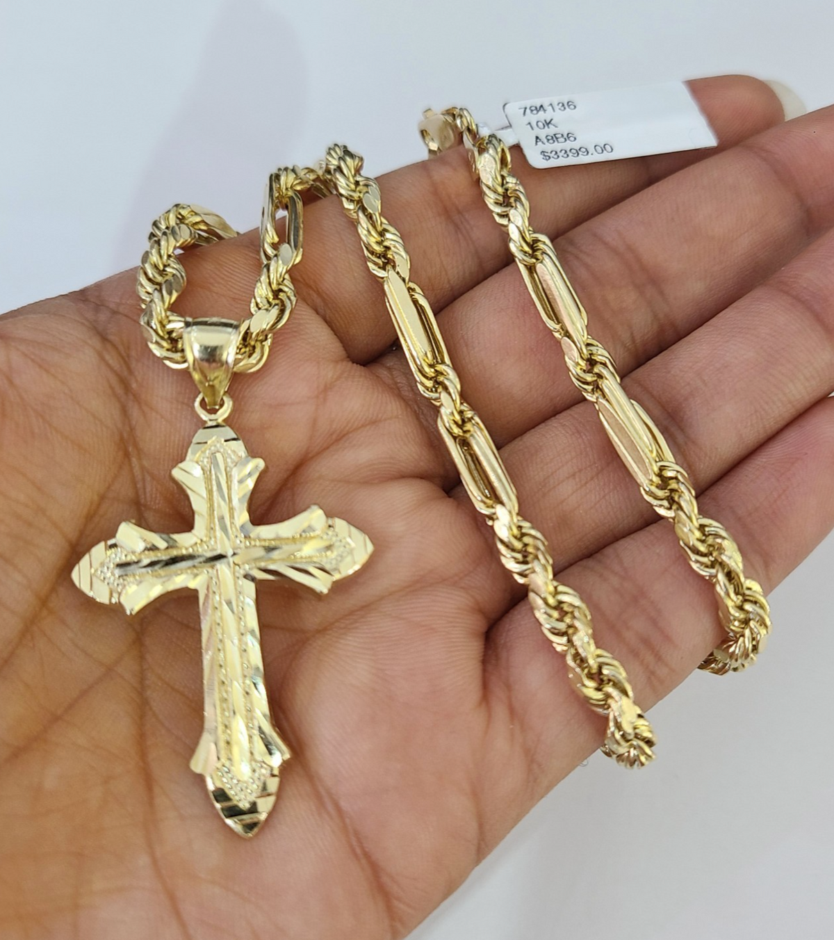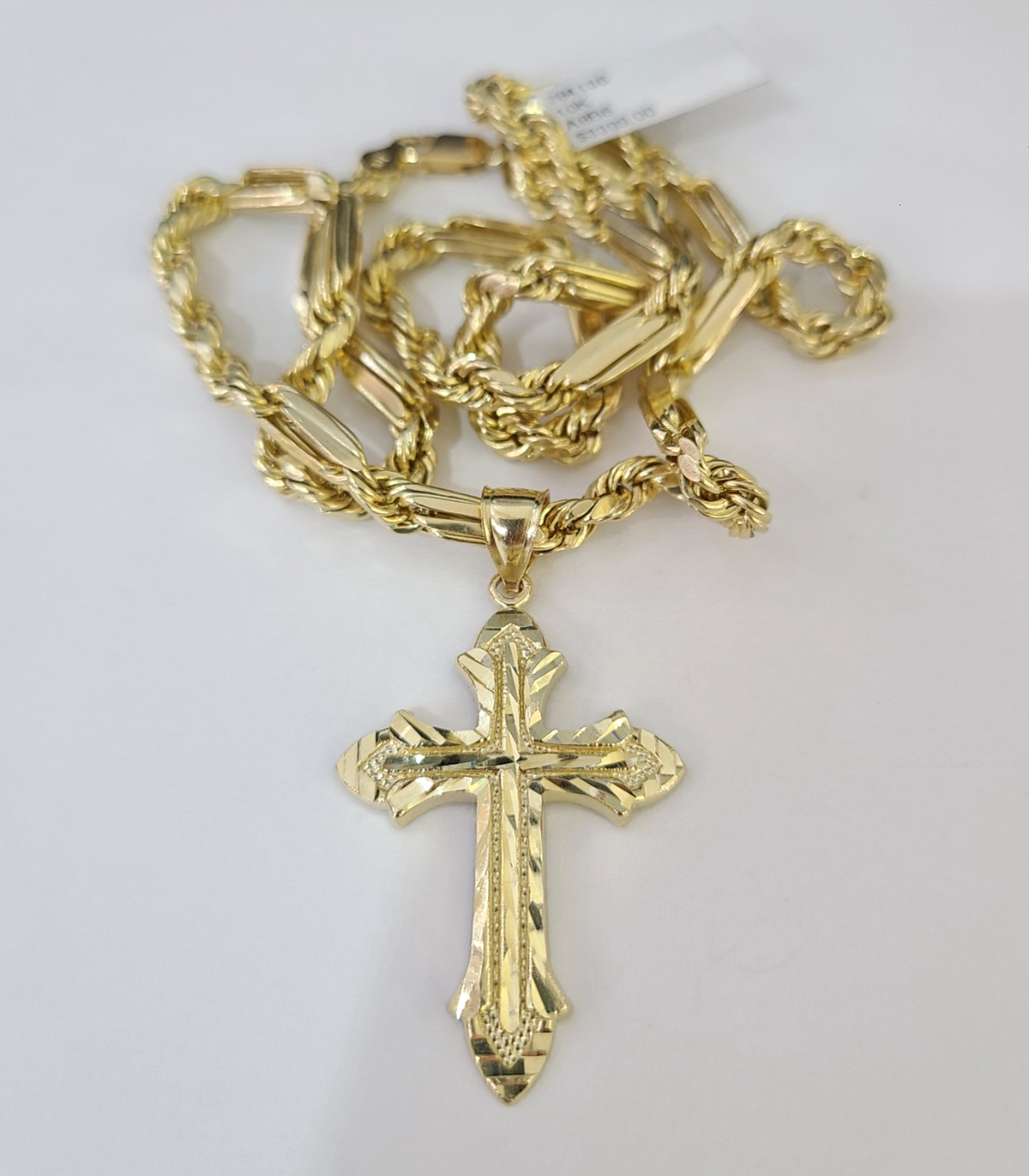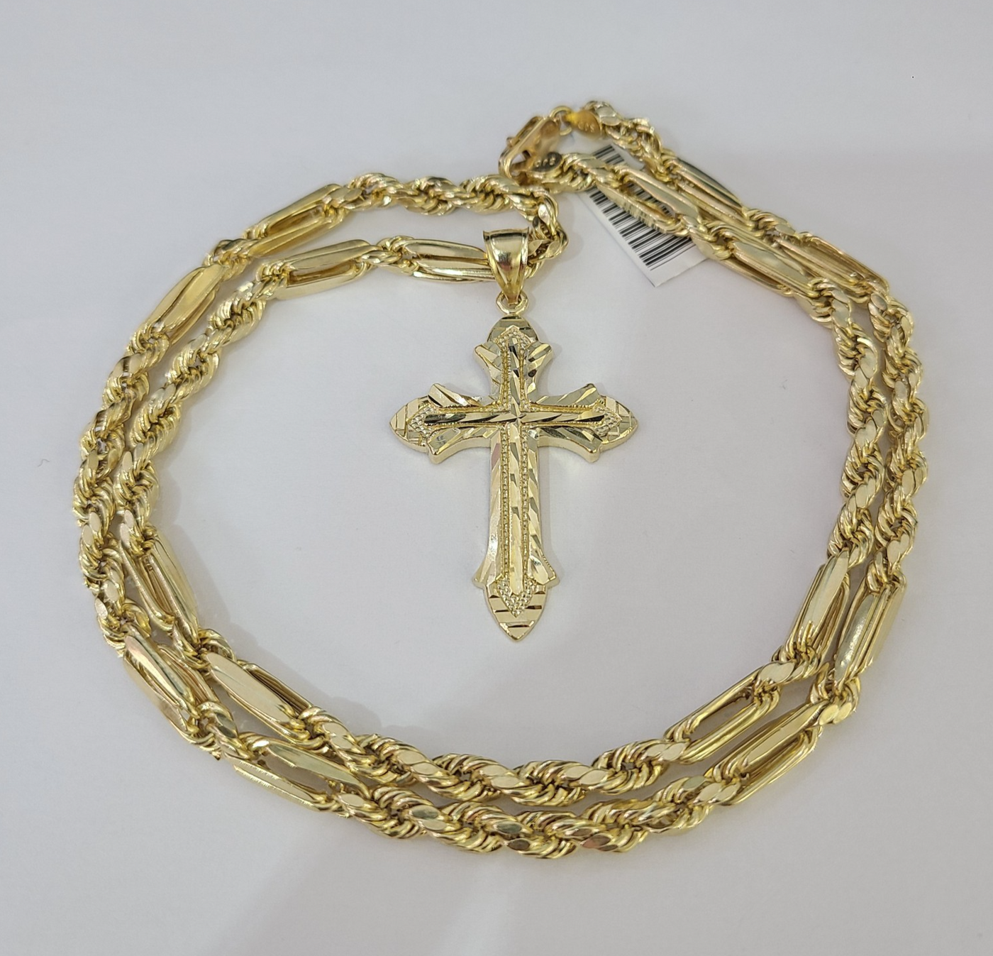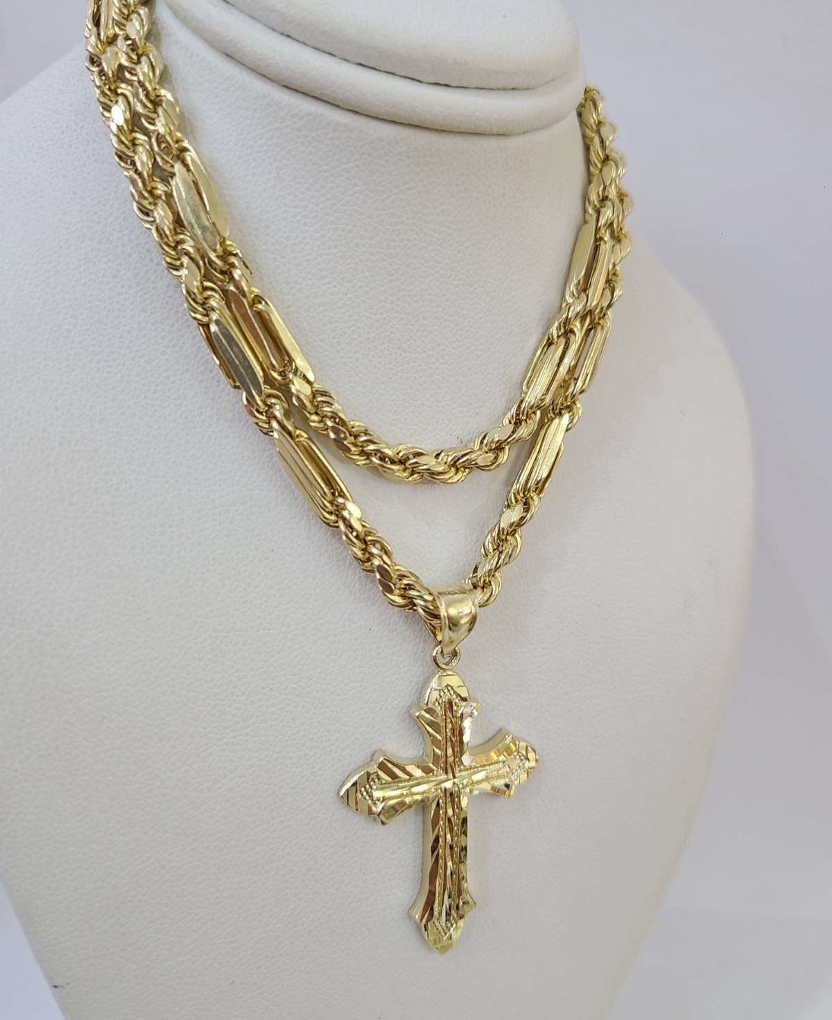 Genuine 10k Yellow Gold Rope Chain 18-28 inches 5mm Necklace with Jesus Cross Calendar design as a SET. The Various length of the Chain are 18-28 inches. If you are not happy with the way it looks or feels, we do offer 30 - Days FREE Return shipping. Contact us for more information.