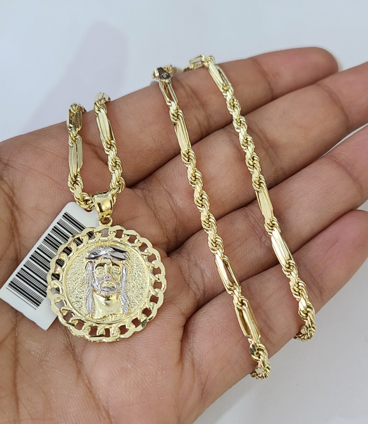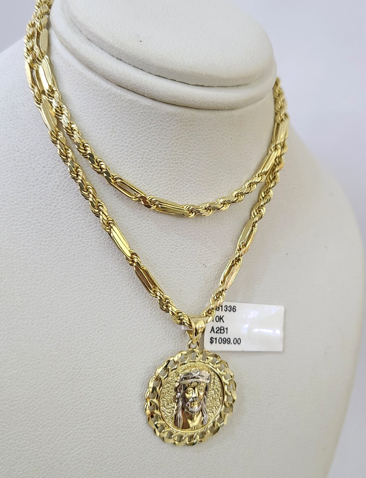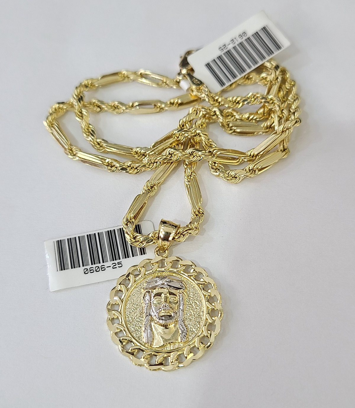10k Milano Rope Chain Jesus Head Charm Necklace SET 3mm 18"-26" Pendant