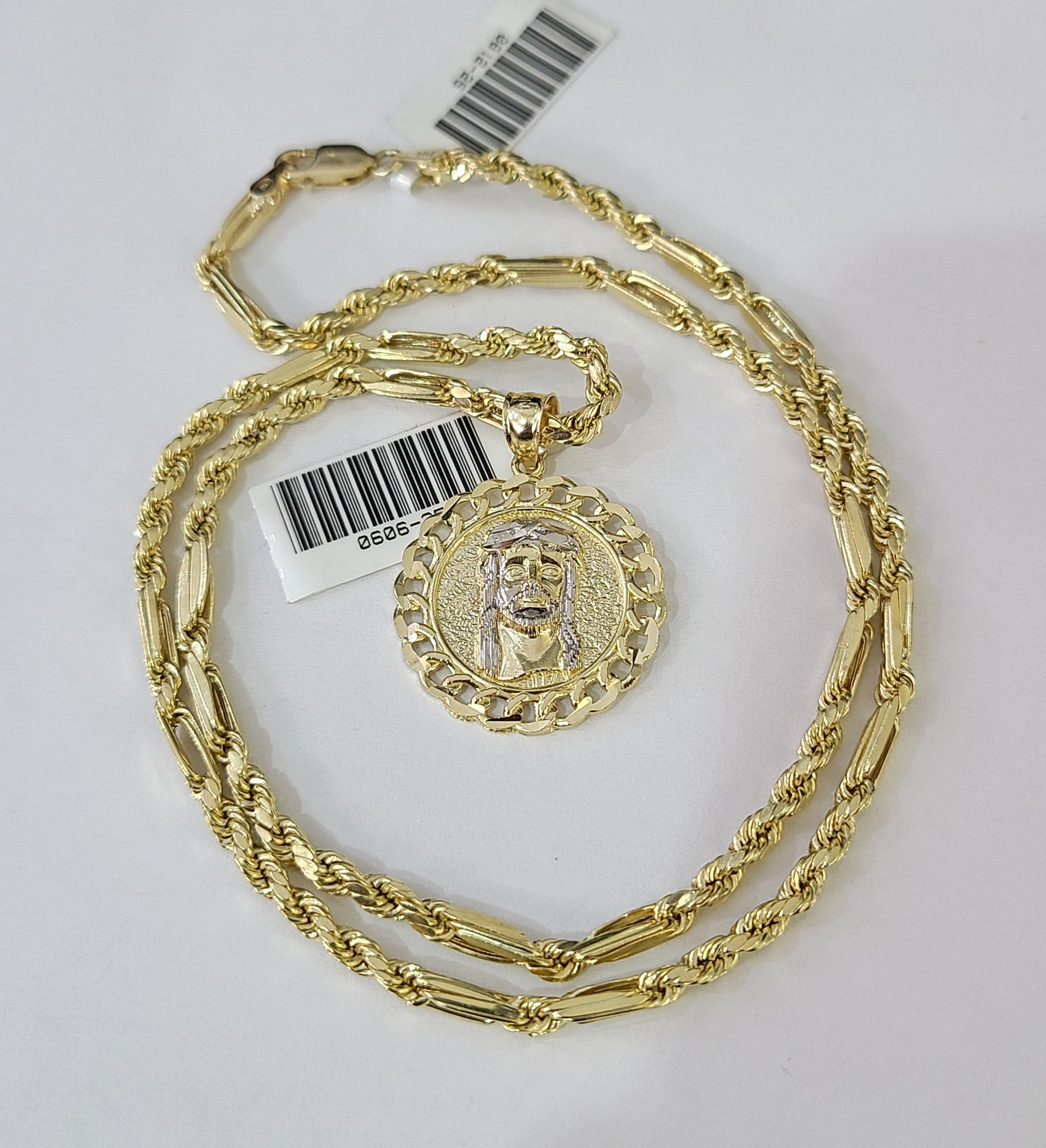 10k Milano Rope Chain Jesus Head Charm Necklace SET 3mm 18"-26" Pendant - 24 Inches