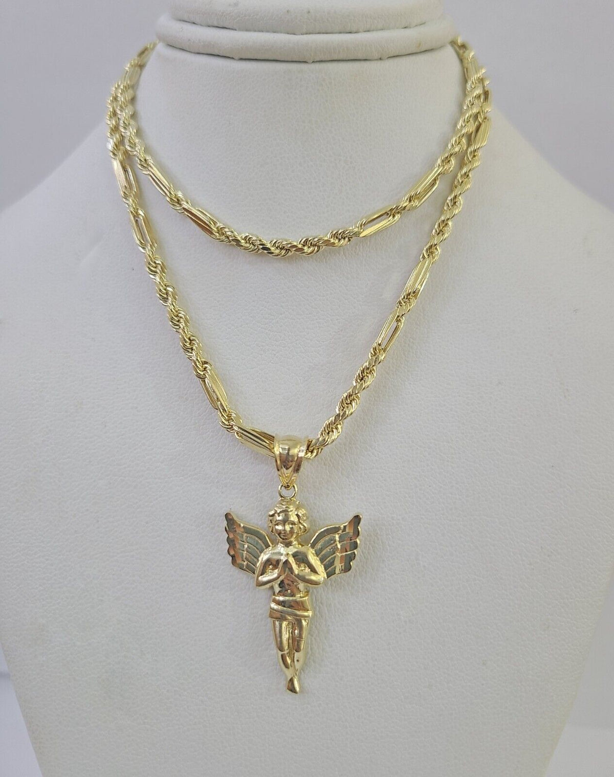 10k Milano Rope Chain Praying Angel Charm Necklace SET 3mm 18"-26" Pendant