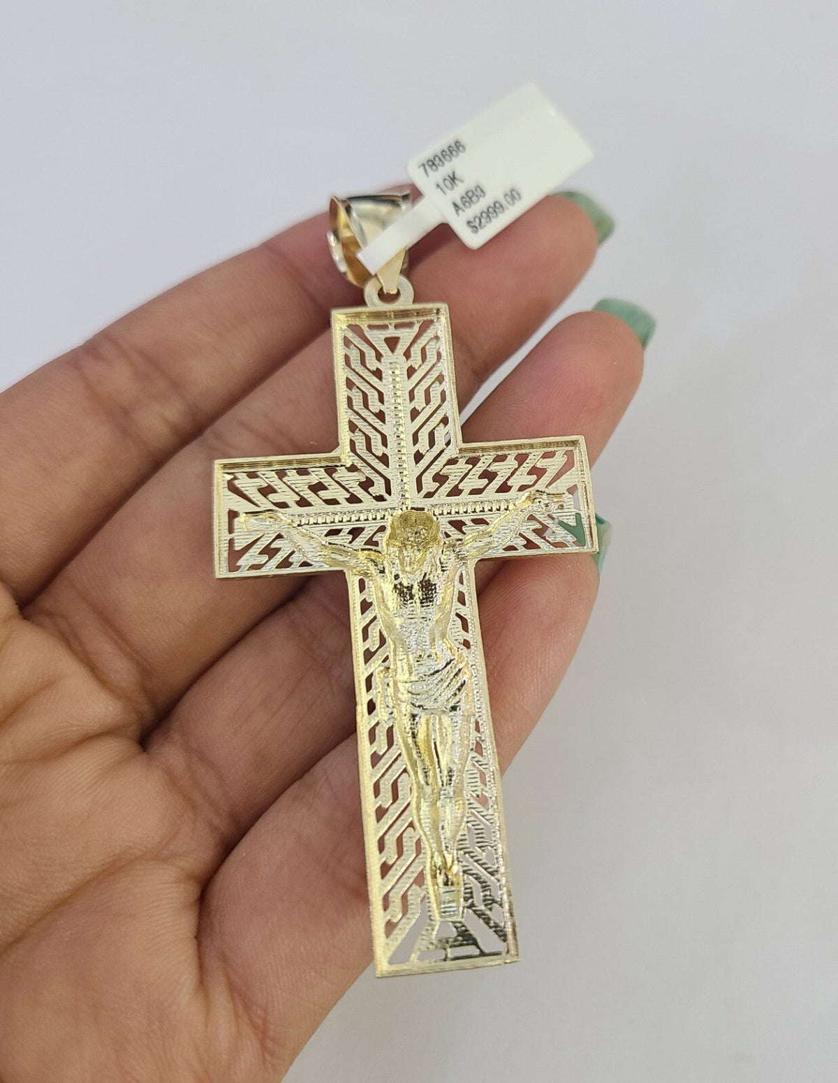 10k Yellow Gold Rope Chain Jesus Cross Charm Pendant 18"-30'' Inch Necklace