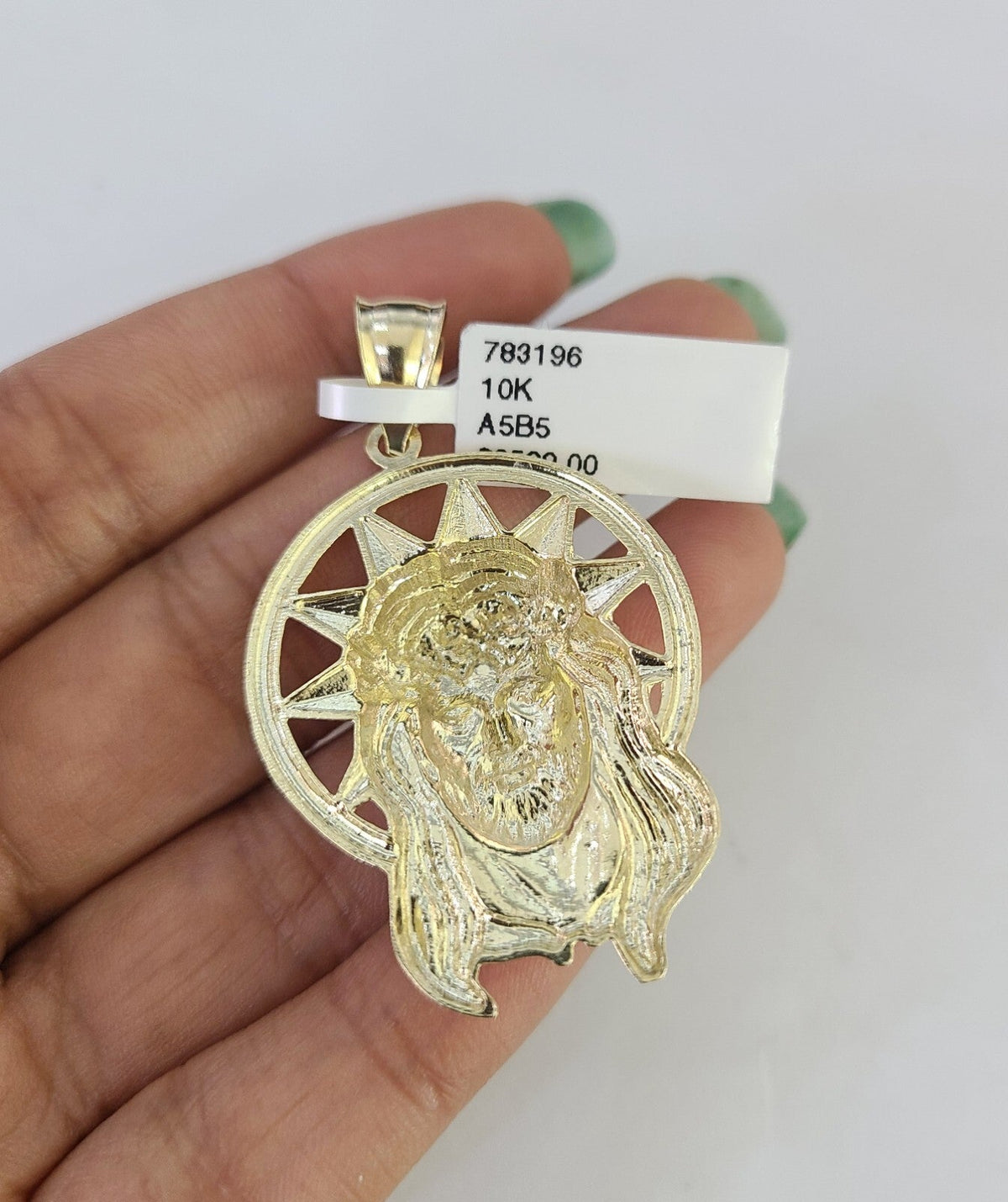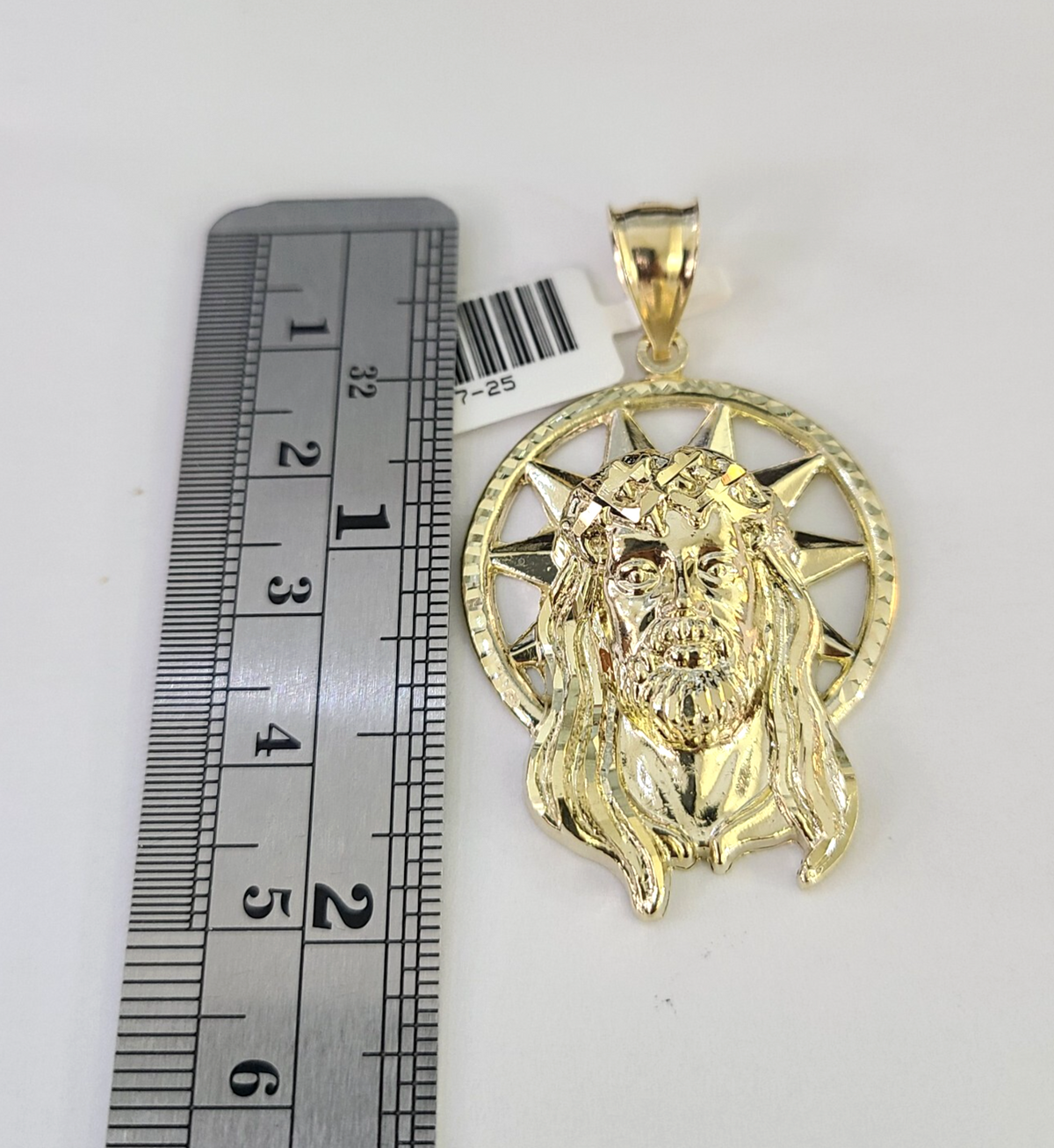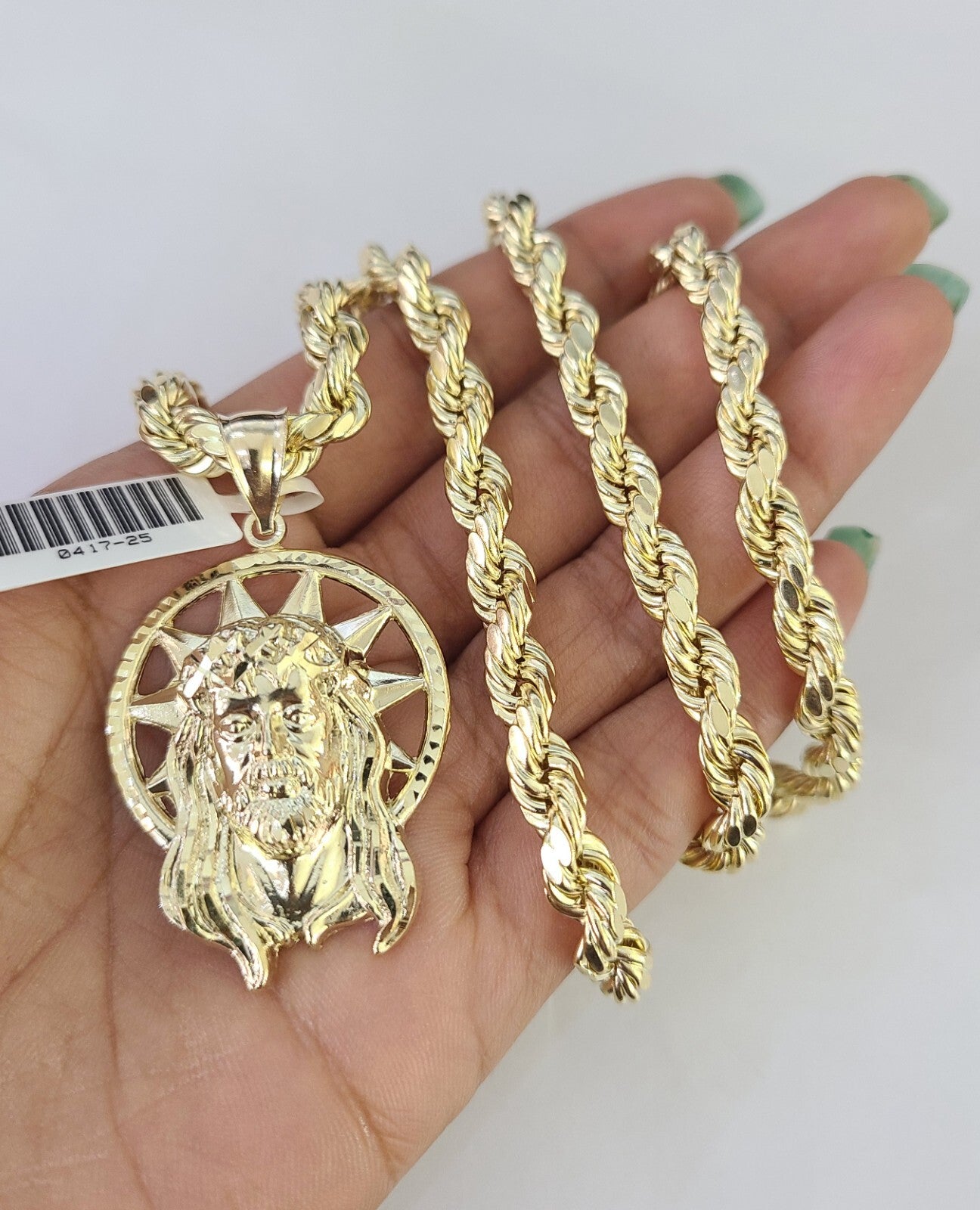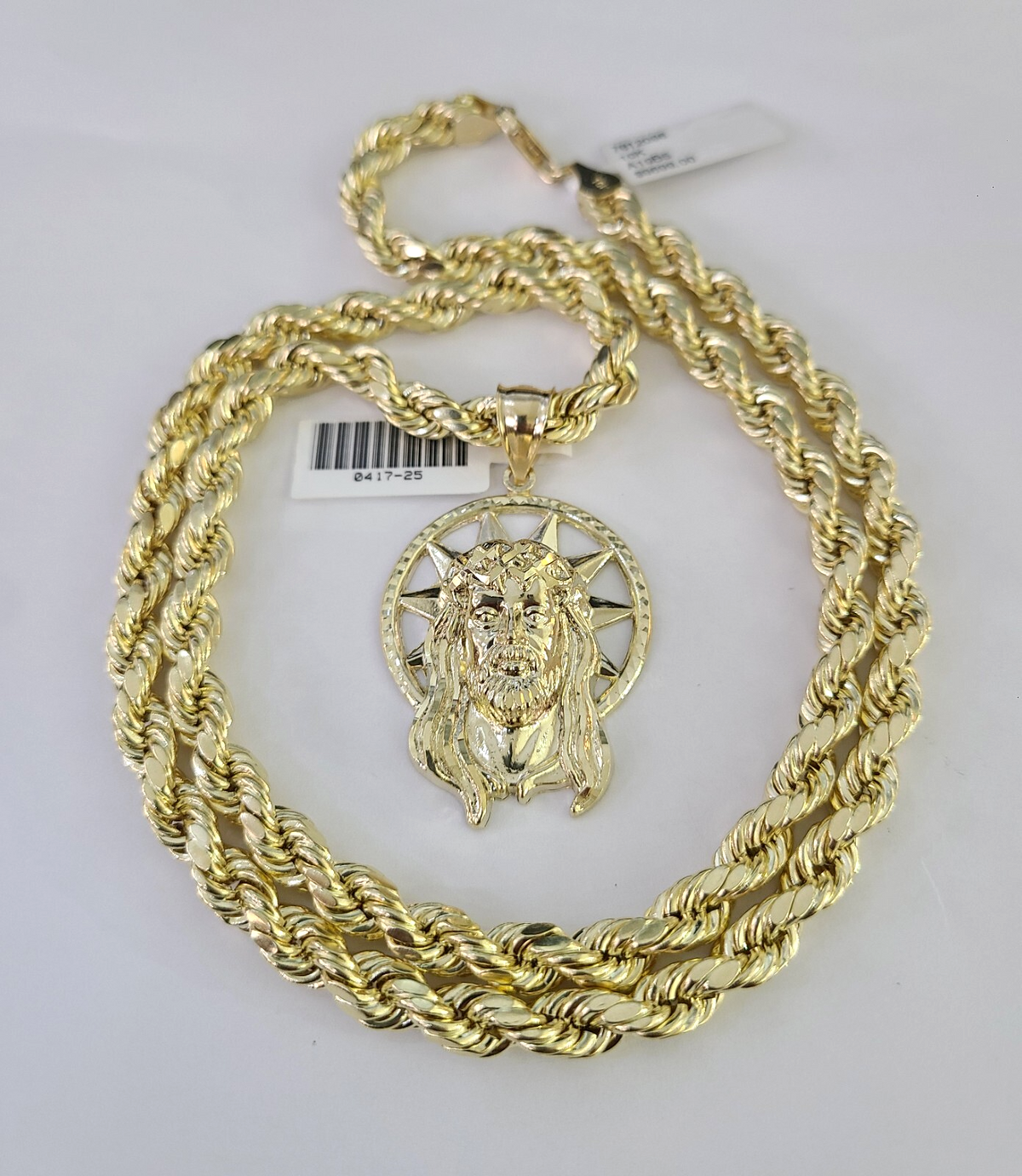 10k Rope Chain Jesus Head Charm Pendant Gold 18"-30'' Inch 7mm Necklace