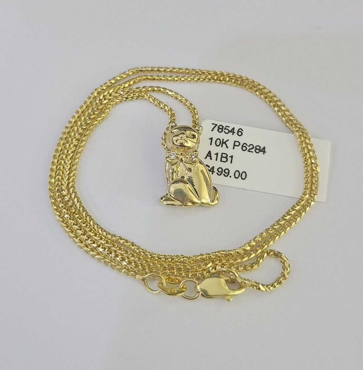 Is Presenting You with This Absolutely Stunning Real 10k Yellow Gold Franco Chain 1mm, 16-22 Inches Lobster Lock with Dog Pendant. The links are 10K GOLD and are very strong. 18"A2B8 A1B1 P6284