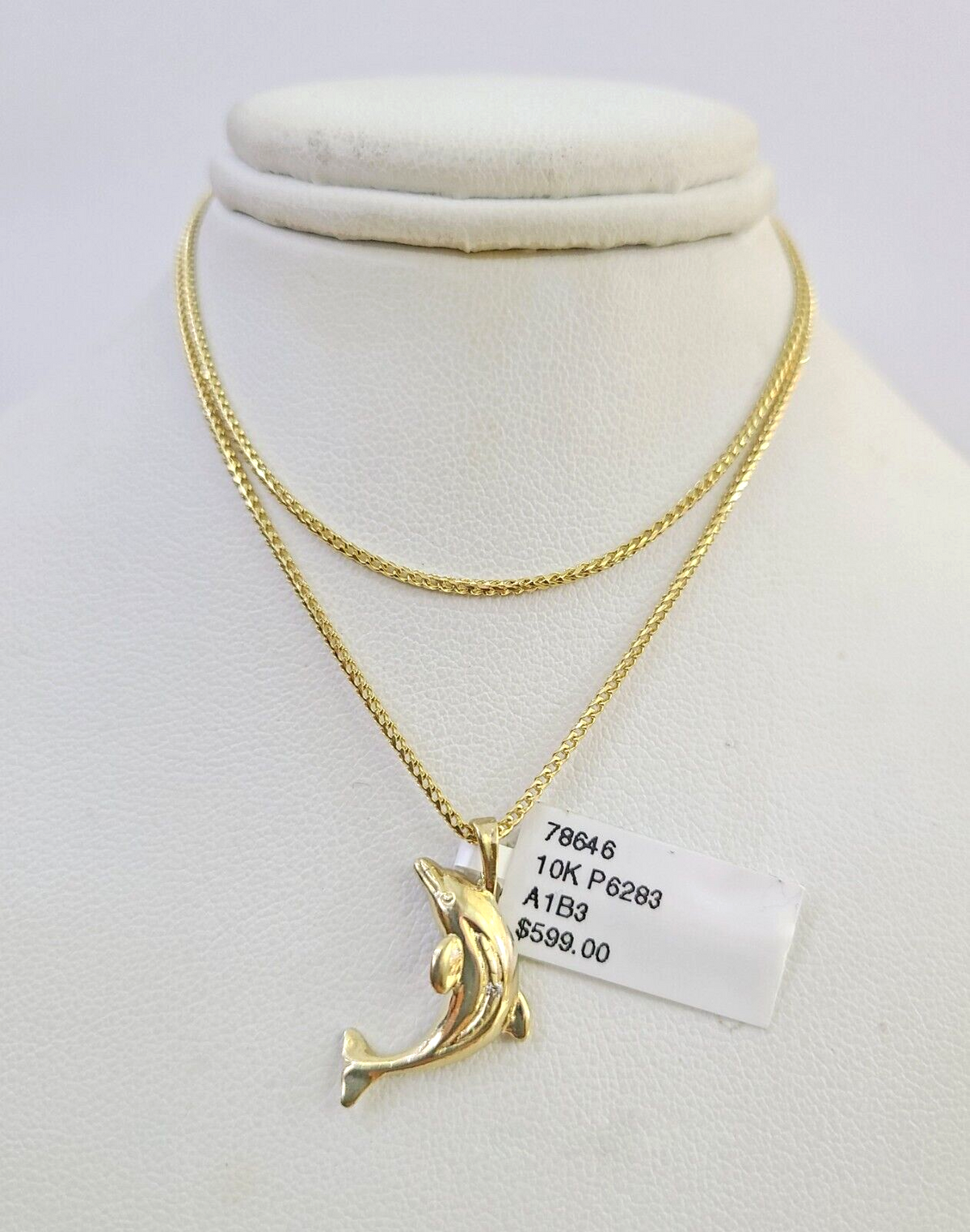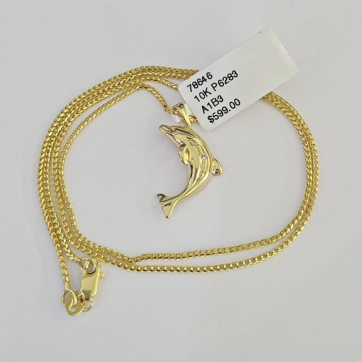 Is Presenting You with This Absolutely Stunning Real 10k Yellow Gold Franco Chain 1mm, 16-22 Inches Lobster Lock with Dolphin Pendant. The links are 10K GOLD and are very strong. 18"A2B8 A1B3 P6283