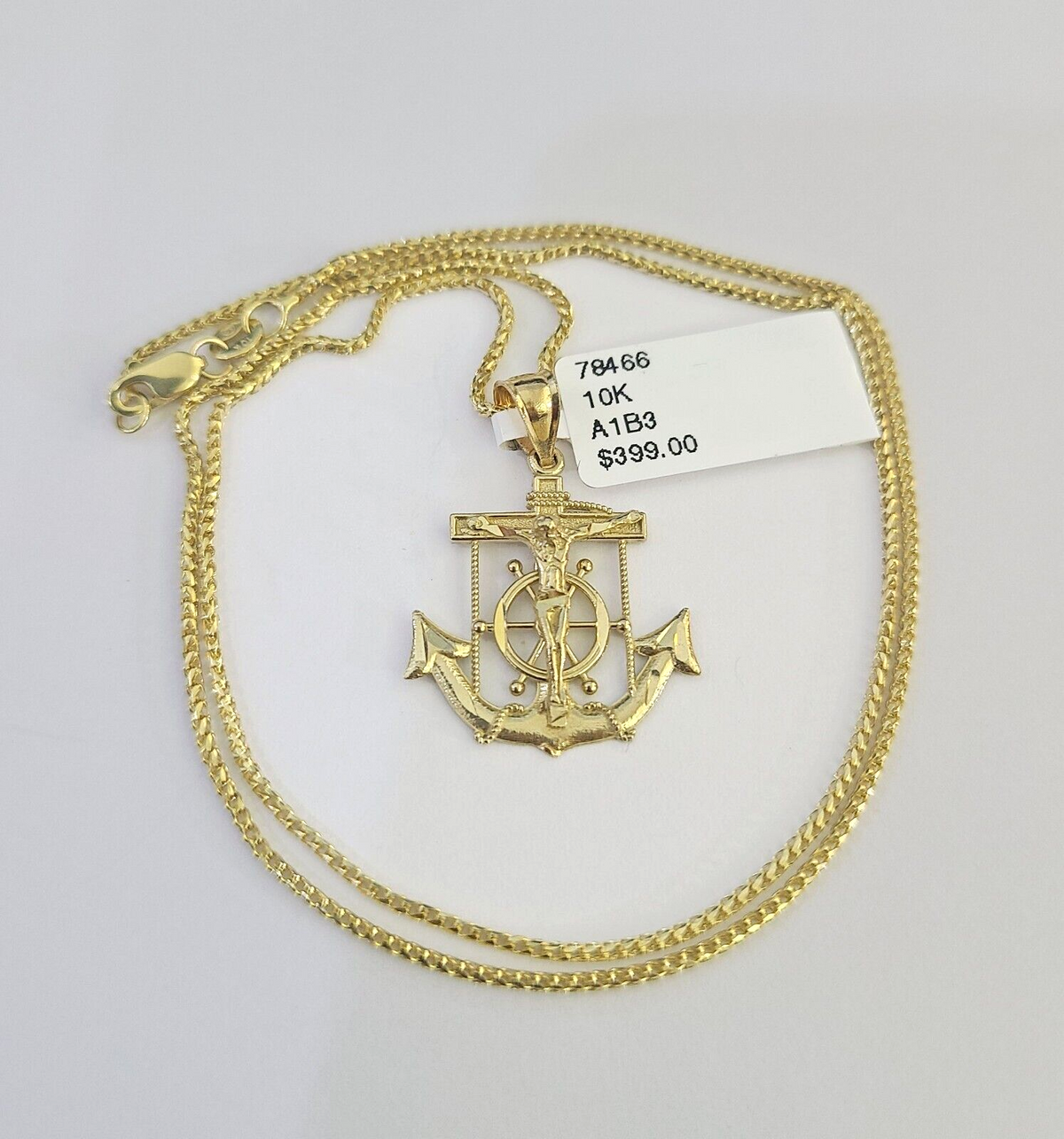 Is Presenting You with This Absolutely Stunning Real 10k Yellow Gold Franco Chain 1mm, 16-22 Inches Lobster Lock with Jesus Anchor Pendant. The links are 10K GOLD and are very strong. 18"A2B8 A1B3