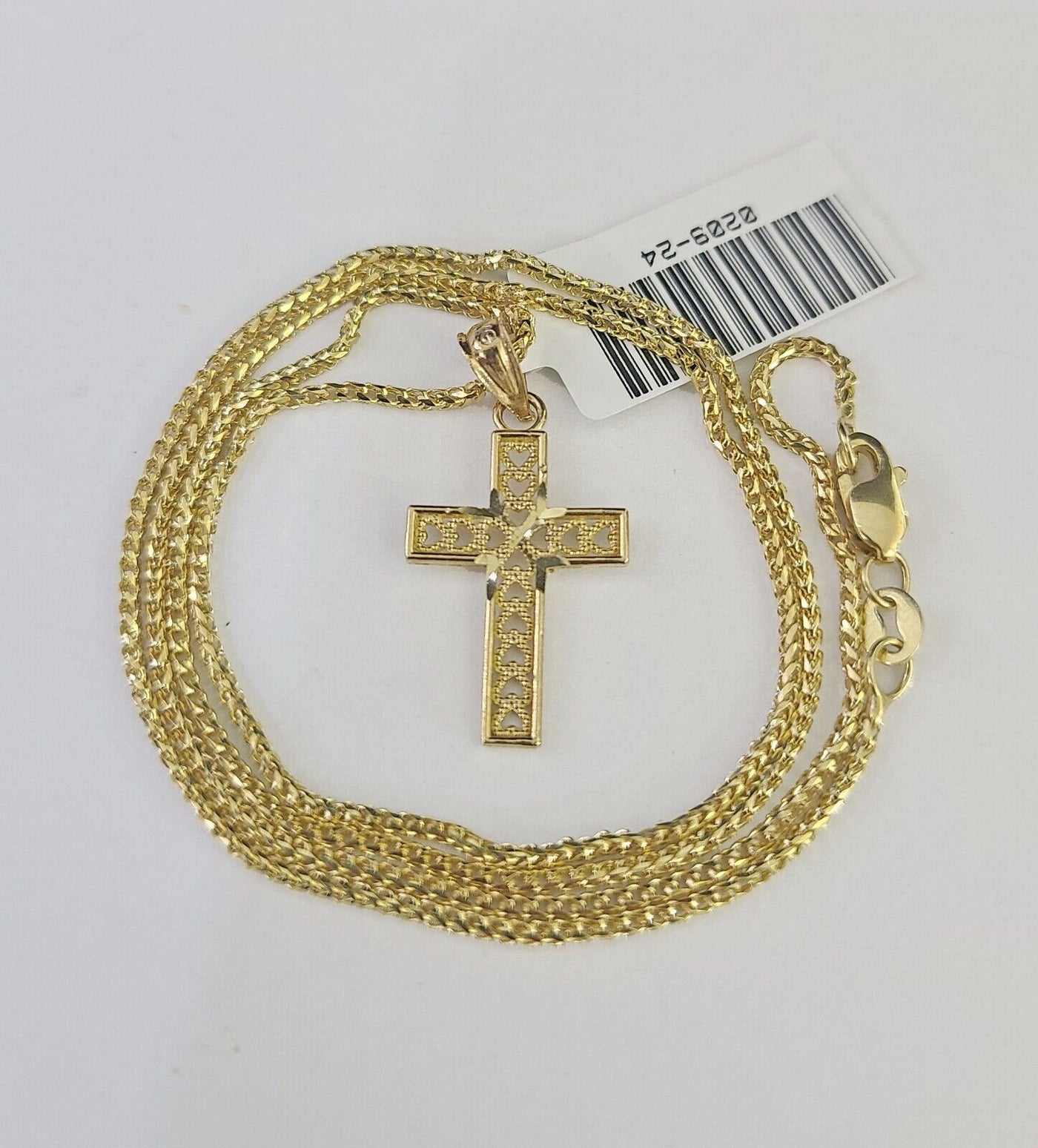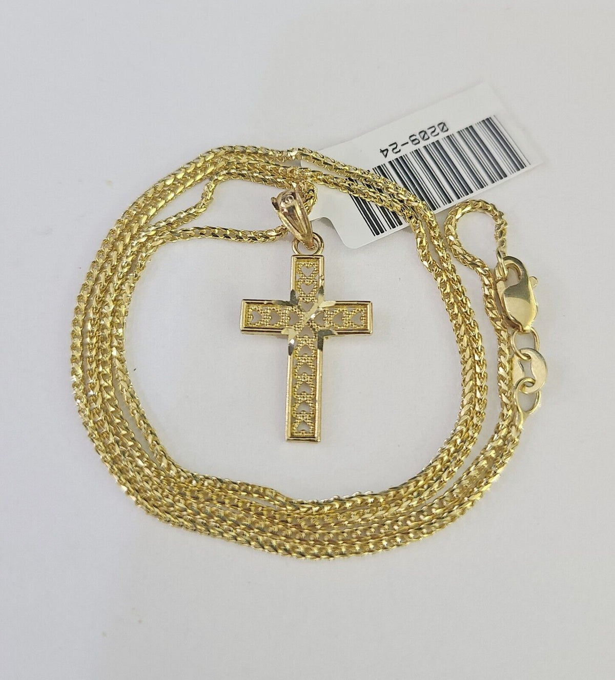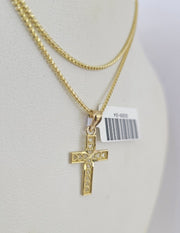 Is Presenting You with This Absolutely Stunning Real 10k Yellow Gold Franco Chain 1mm, 16-24 Inches Lobster Lock with Jesus Cross Pendant. The links are 10K GOLD and are very strong. 18"A2B8 A0B6