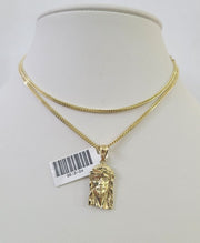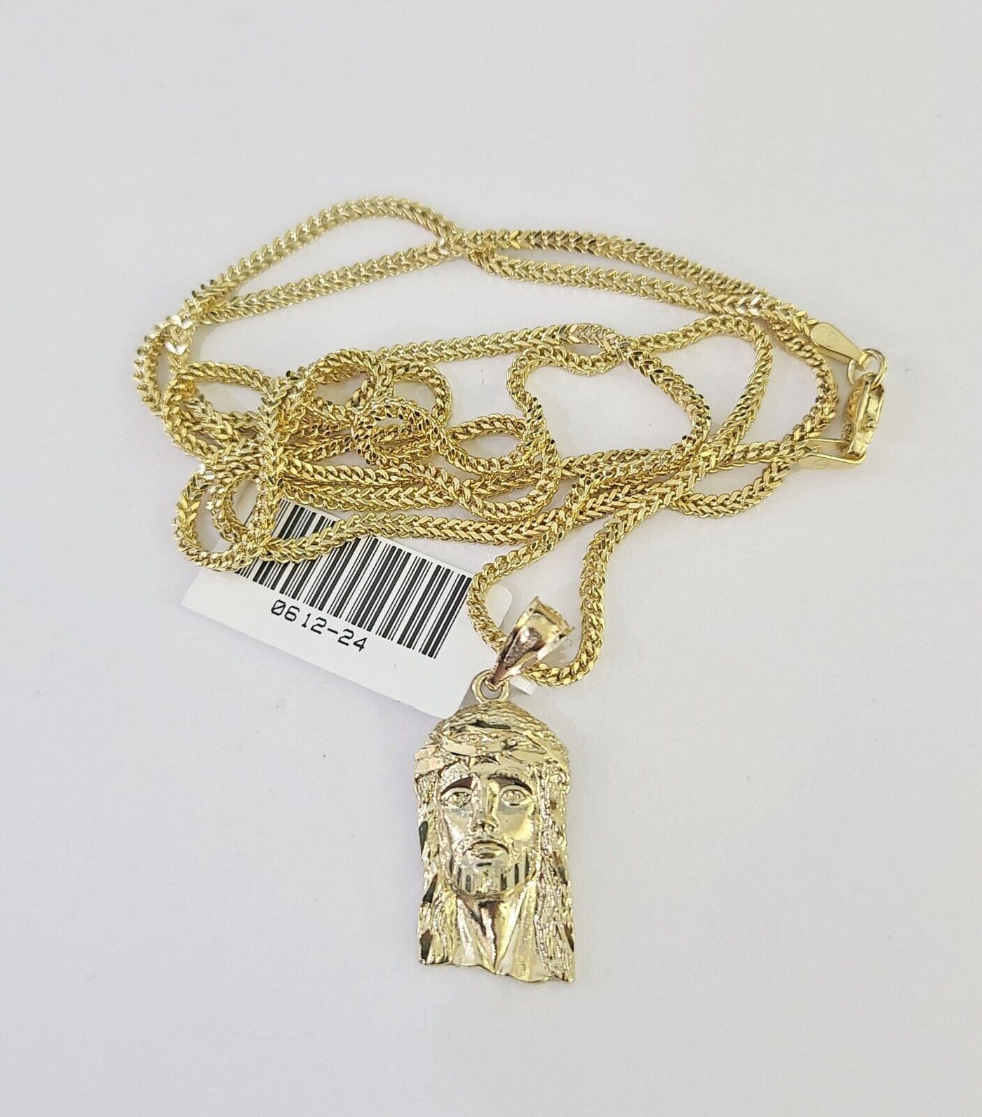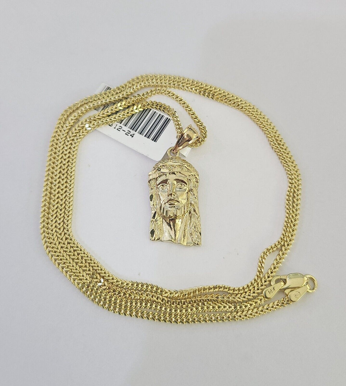 Is Presenting You with This Absolutely Stunning Real 10k Yellow Gold Franco Chain 1mm, 18-24 Inches Lobster Lock with Jesus Head Pendant. The links are 10K GOLD and are very strong. 18"A2B8 CalA1B3