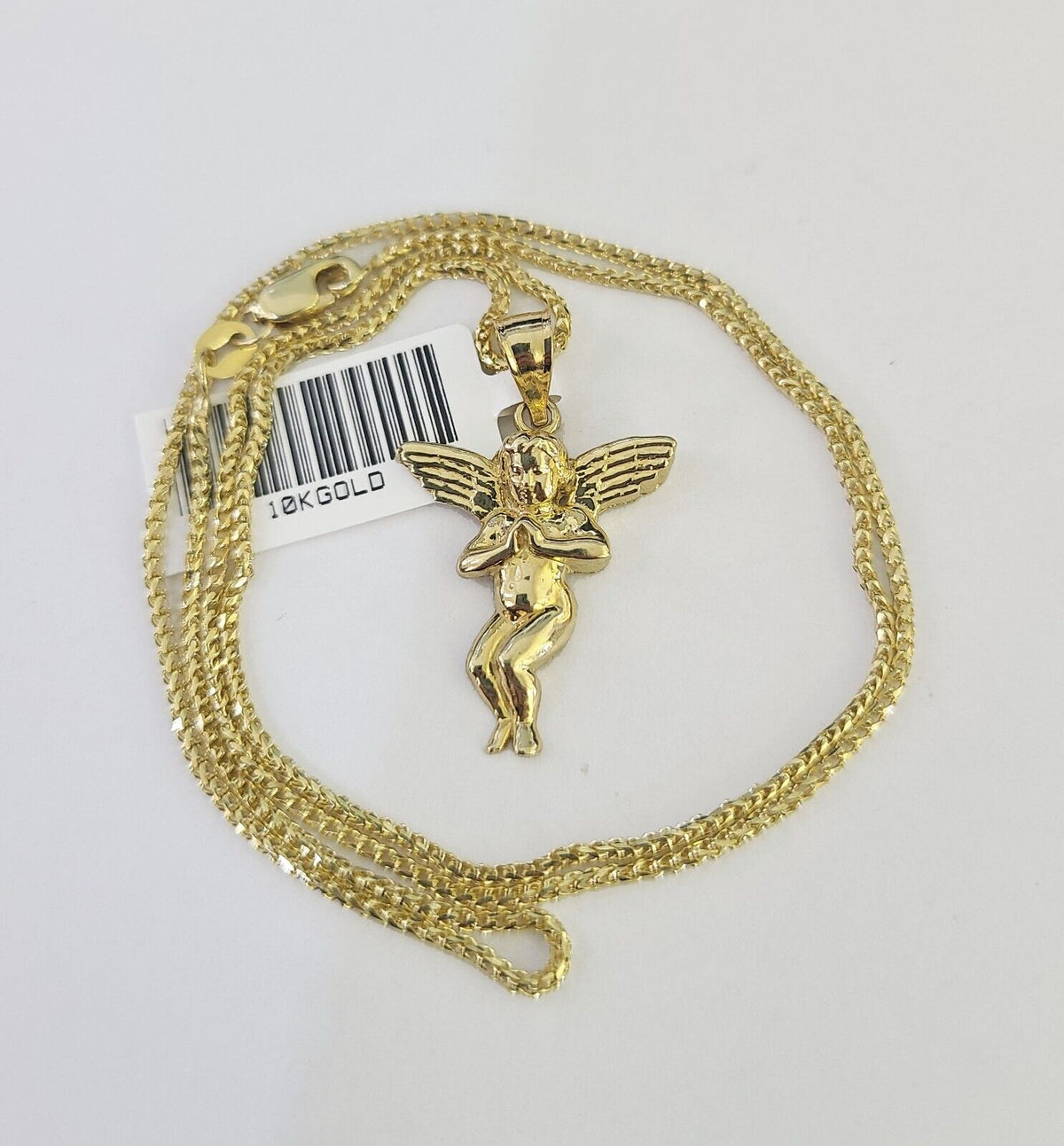 Is Presenting You with This Absolutely Stunning Real 10k Yellow Gold Franco Chain 1mm, 18-24 Inches Lobster Lock with Praying Angel Pendant. The links are 10K GOLD and are very strong. 18"A2B8 Cal A1B3