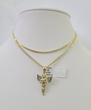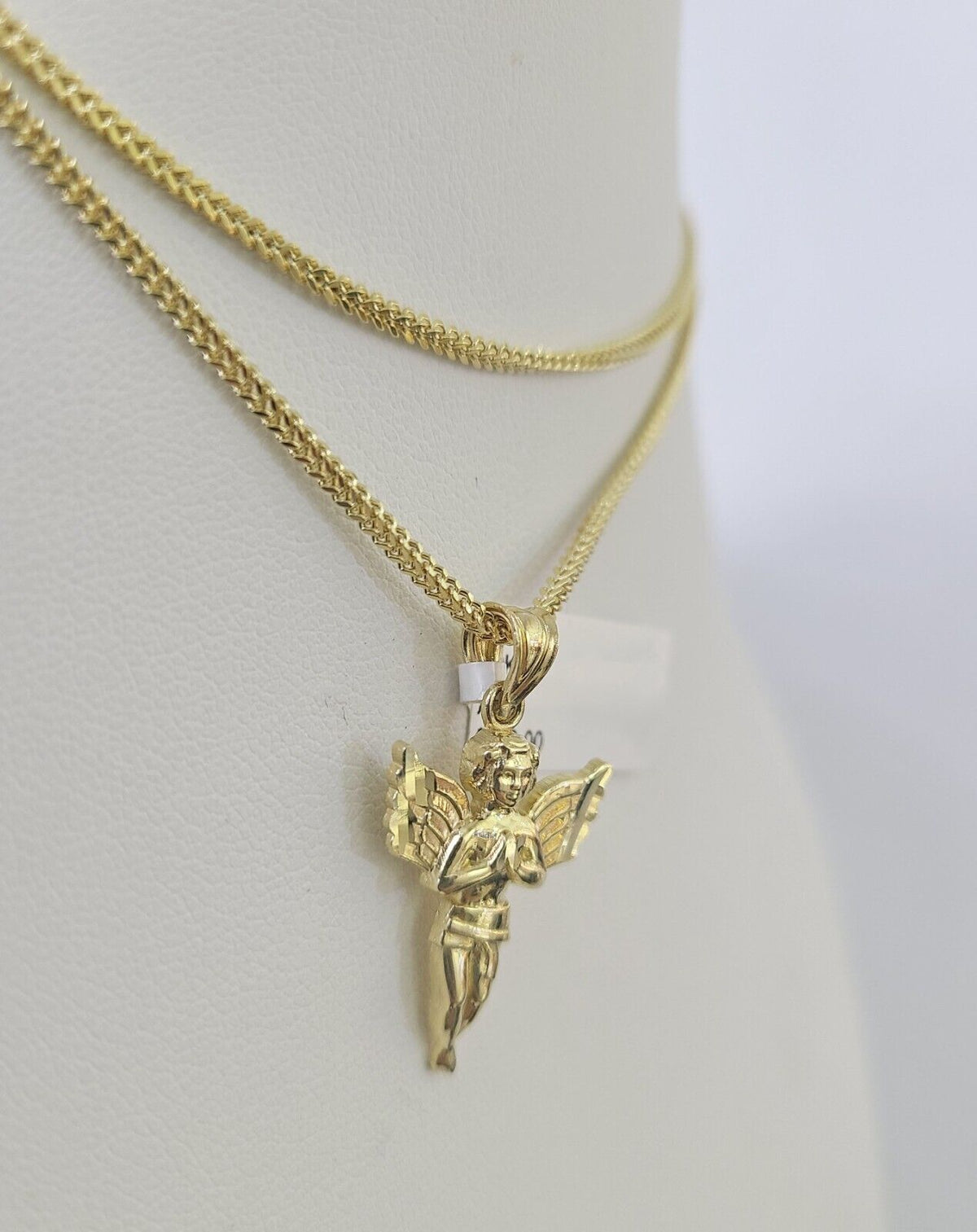 Is Presenting You with This Absolutely Stunning Real 10k Yellow Gold Franco Chain 1mm, 18-24 Inches Lobster Lock with Praying Angel Pendant. The links are 10K GOLD and are very strong. 18"A2B8 AskA1B4