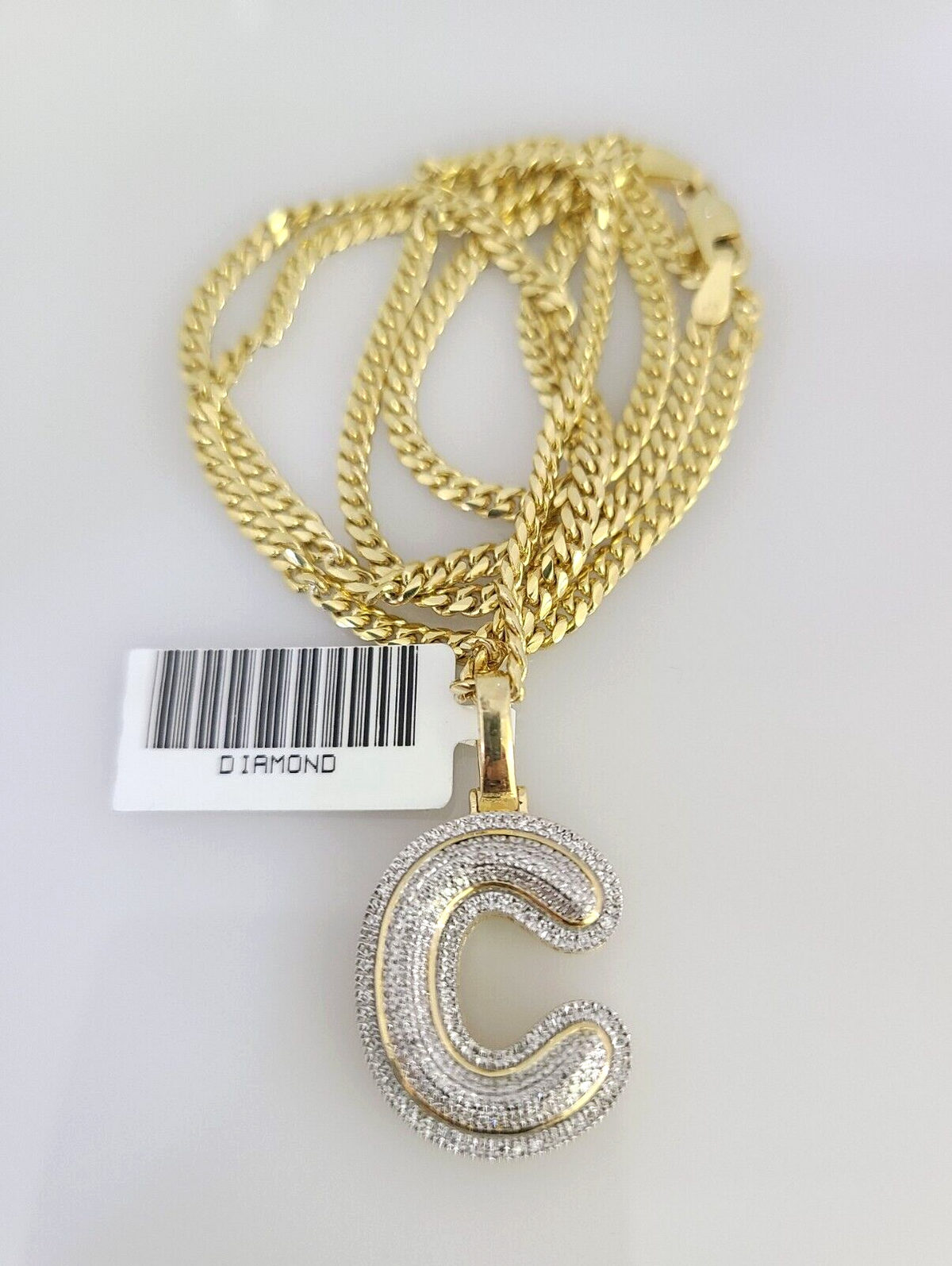 Is Presenting You with This Absolutely Stunning Real 10k Yellow Gold Solid Miami Cuban Chain 2.5mm, 18-26 Inches with Diamond C Alphabet/Initial Charm, Lobster Lock. The links are 10K GOLD and are very strong. These Beautiful Chains will not tarnish, discolor, or fade because they are Pure 10K Gold. We also have them in various another length. Please feel free to contact us if you have any queries regarding the item. 22"-A11B3 SJ359D