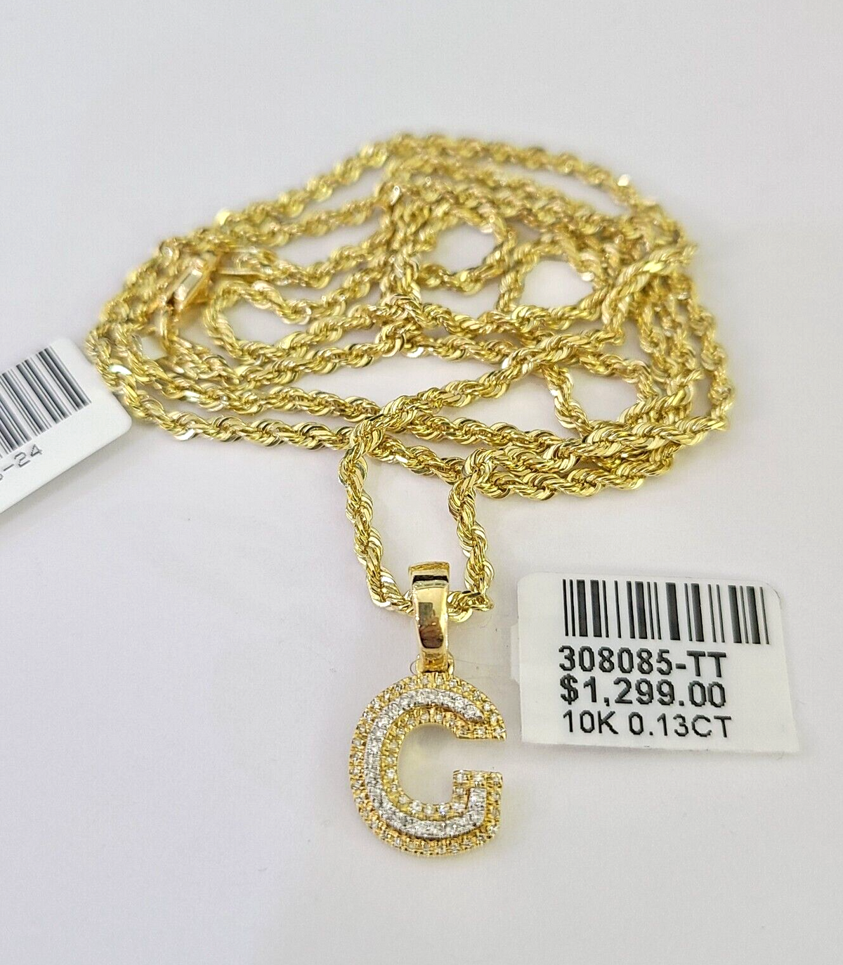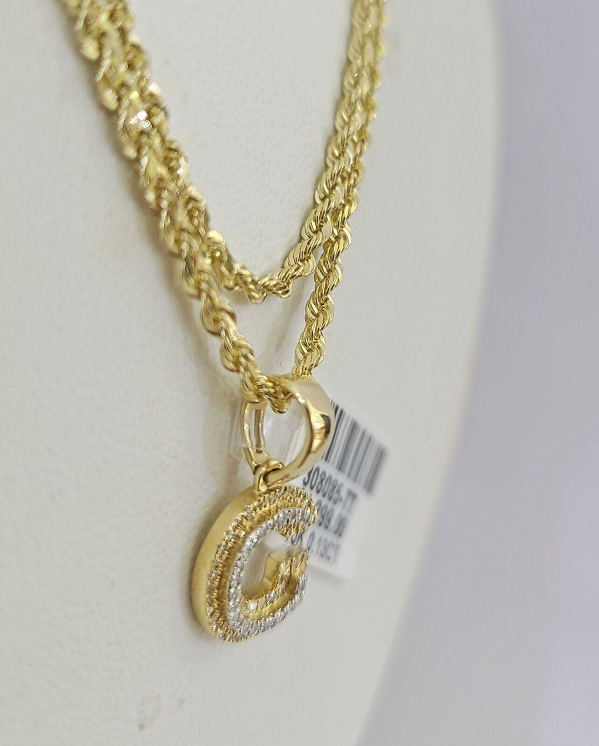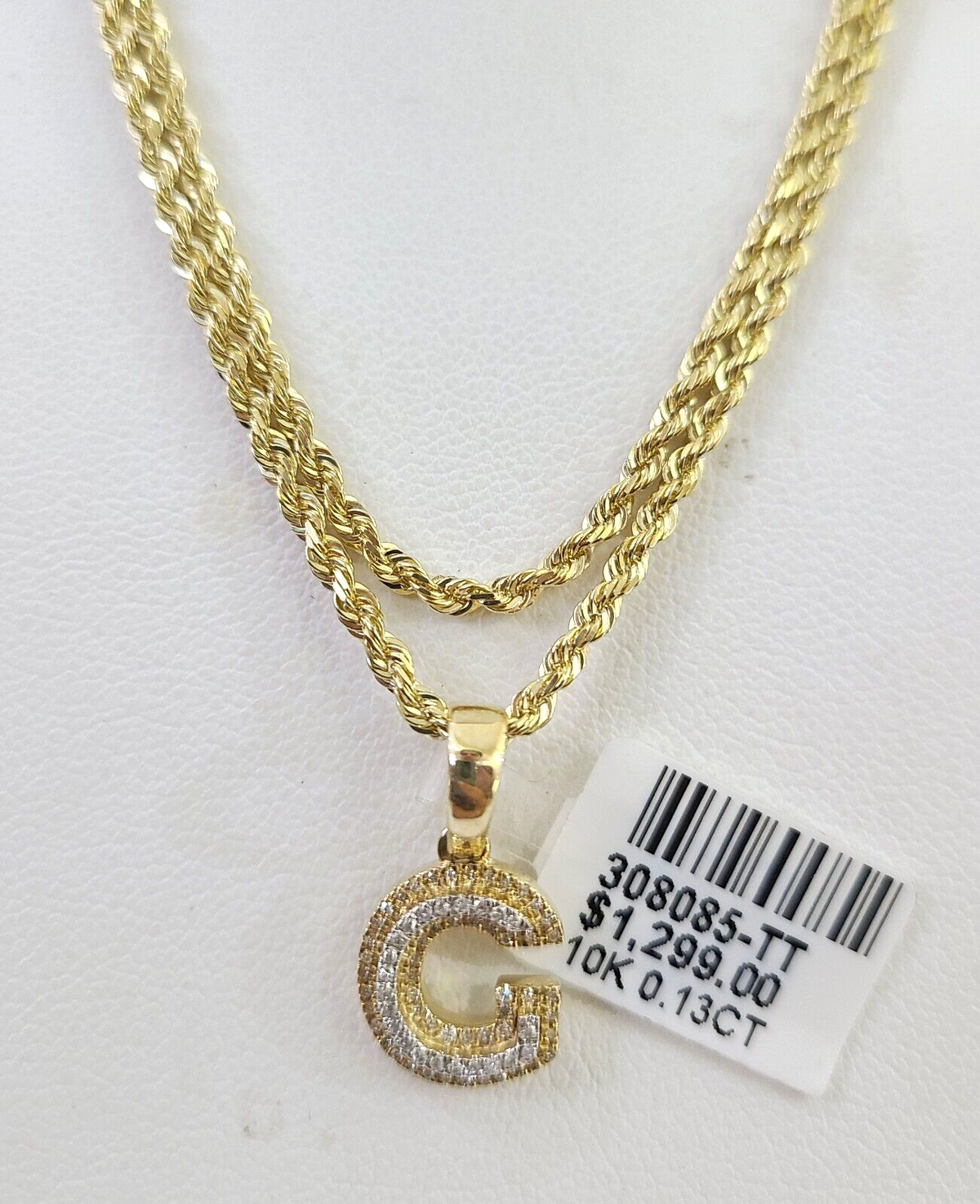 Is Presenting You with This Beautifully Designed Real 10k Yellow Gold Diamond G Initial Charm with 10k 2mm Solid Rope Chain in various lengths. Please feel free to contact us if you have any queries regarding the item. These Beautiful chains and pendants will not tarnish, discolor, or fade because they are Pure 10K Gold. 22"-A7B4 , SJ129D12